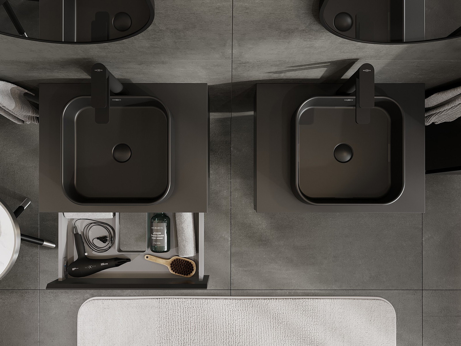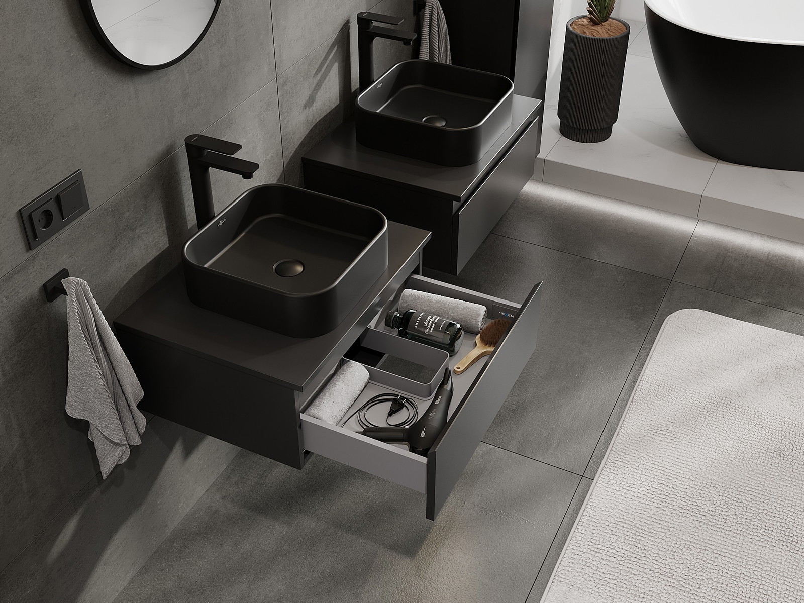 Mūsu modulārās vannas istabas mēbeles var savstarpēji kombinēt dažādās krāsu konfigurācijās, ļaujot pilnīgu personalizāciju. Var izvēlēties gan izskatu, gan atsevišķu elementu funkcijas, kas ļauj pielāgot mēbeles savām stilistiskajām un lietotāju vēlmēm.