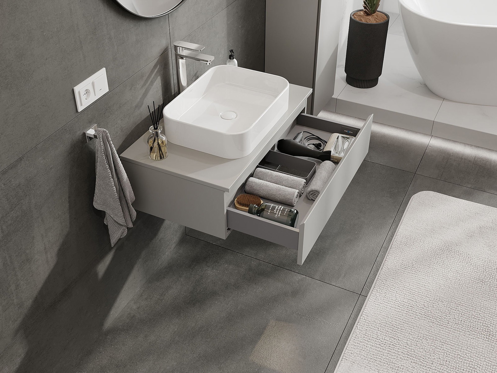 Mexen Orio vannas istabas skapītis zem izlietnes, 80 cm ar virsmu, 1 atvilktne, pelēks mats - 91A10-08023-1-BFC62