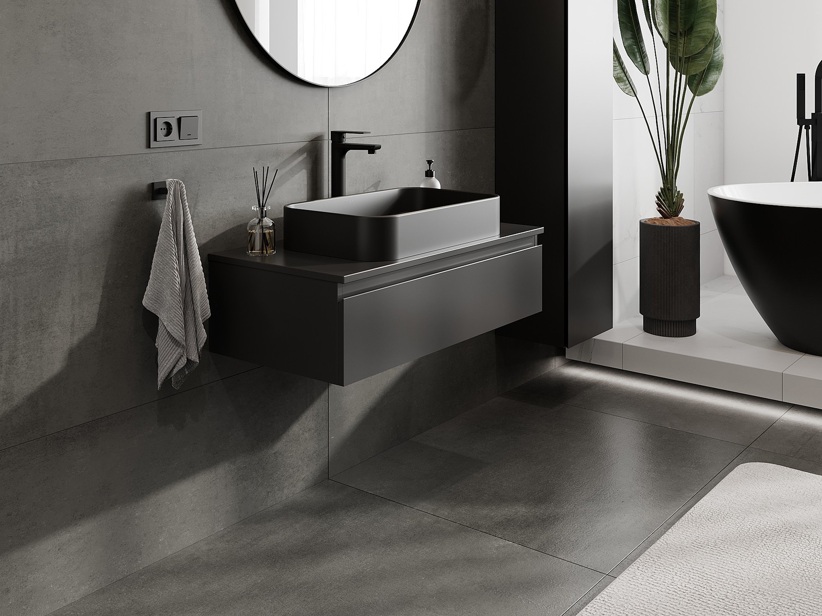 Mexen Orio vannas istabas skapītis zem izlietnes 90 cm ar galda virsmu, 1 atvilktne, melns mats - 91A10-09023-1-BFC71