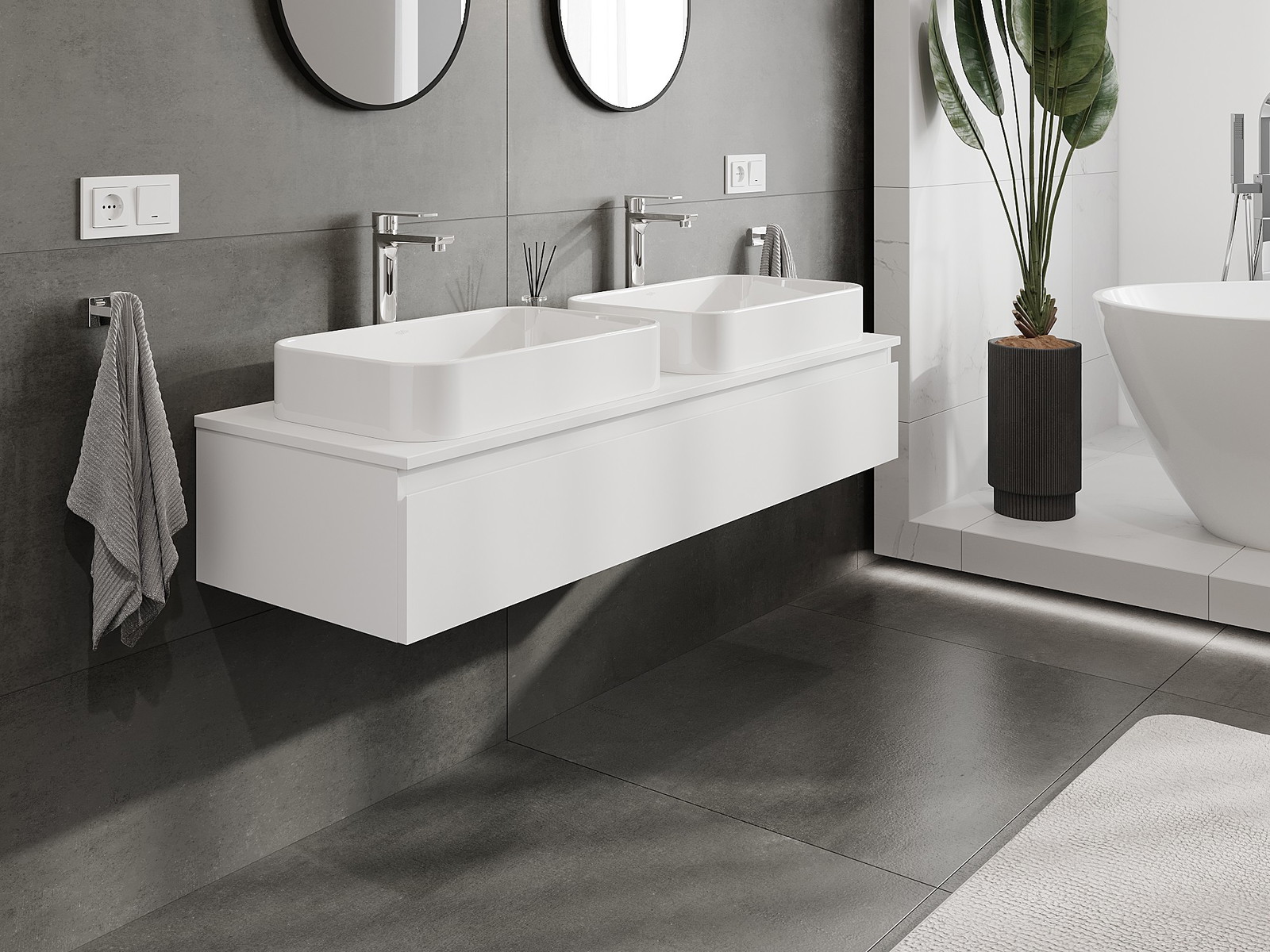 Mexen Orio vannas istabas izlietnes skapītis ar galda virsmu, 140 cm, 1 atvilktne, balts matēts - 91A10-14023-1-BFC01