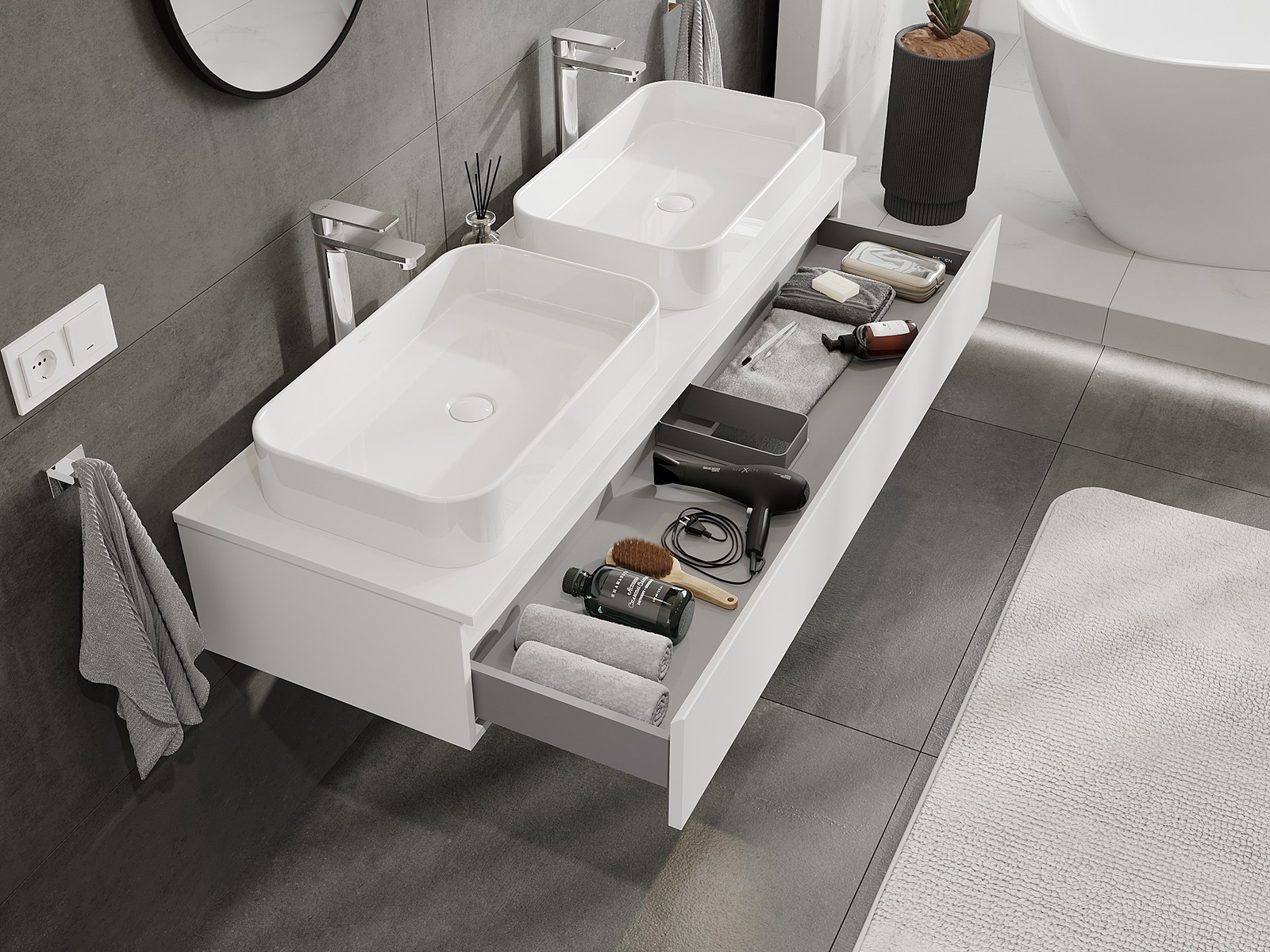 Skapja korpuss tiek piegādāts pilnībā samontēts, kas nozīmē maksimālu ērtību un laika ietaupījumu. Jums nav jātērē stundas mēbeļu salikšanai – pietiek to uzstādīt izvēlētajā vietā vannas istabā. Tas ir ideāls risinājums cilvēkiem, kuri novērtē ātru montāžu un tūlītēju efektu.