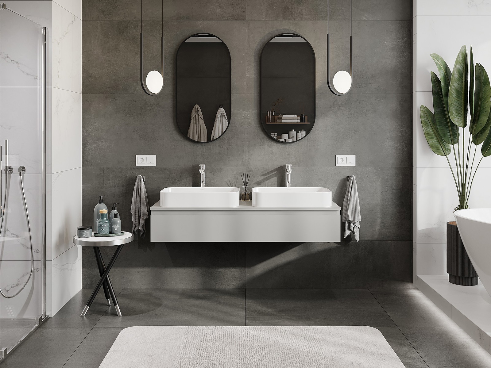 Mūsu modulārās vannas istabas mēbeles var savstarpēji kombinēt dažādās krāsu konfigurācijās, ļaujot pilnīgu personalizāciju. Var izvēlēties gan izskatu, gan atsevišķu elementu funkcijas, kas ļauj pielāgot mēbeles savām stilistiskajām un lietotāju vēlmēm.