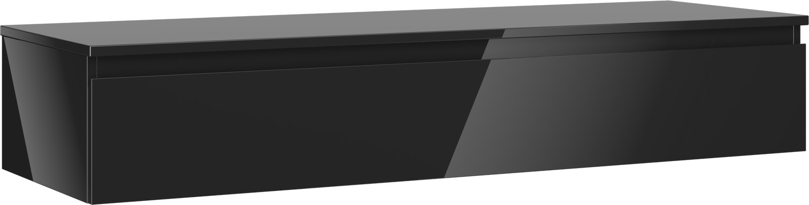 Mexen Orio vannas istabas skapis zem izlietnes 140 cm ar galda virsmu, 1 atvilktne, melns spīdums - 91A10-14023-1-BFC70