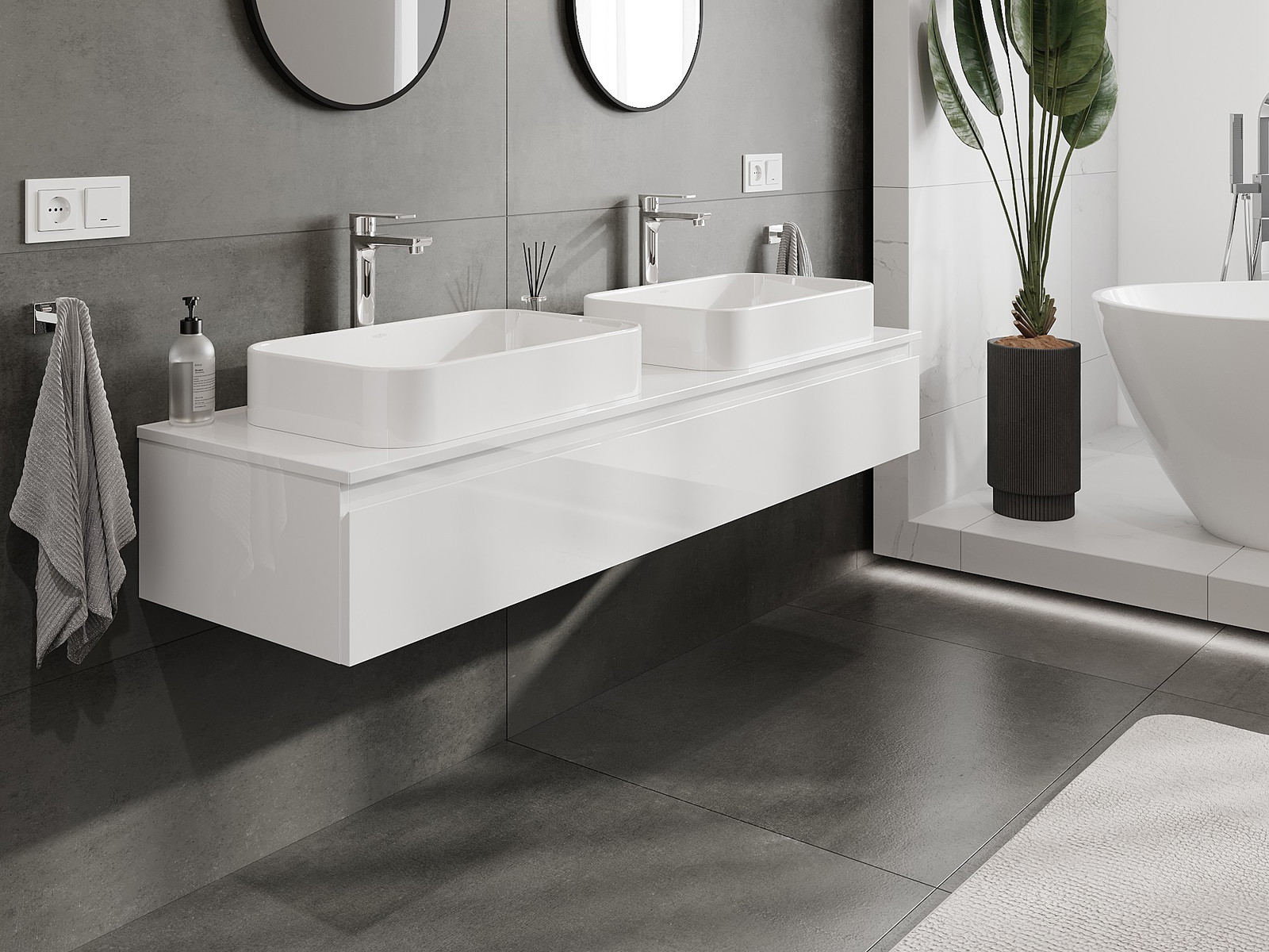 Mexen Orio vannas istabas skapītis zem izlietnes 160 cm ar galda virsmu, 1 atvilktne, balts spīdums - 91A10-16023-1-BFC00