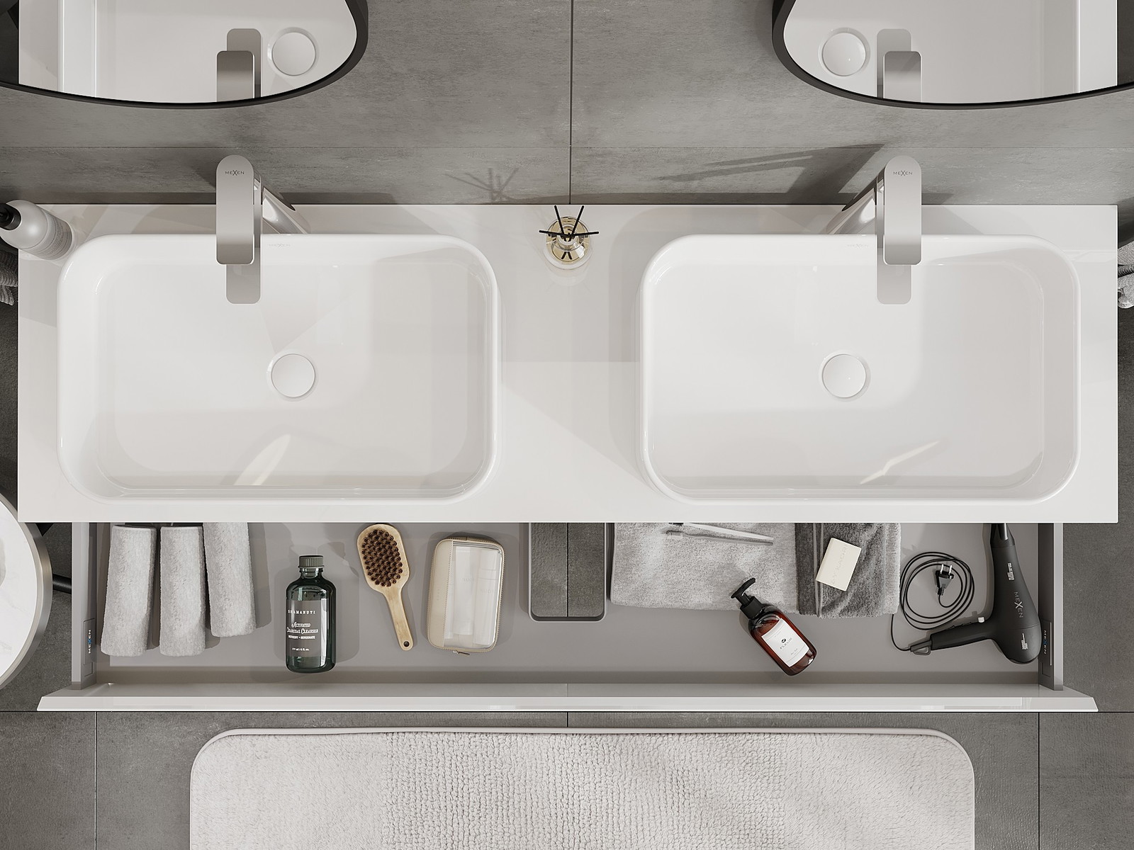 Mūsu modulārās vannas istabas mēbeles var savstarpēji kombinēt dažādās krāsu konfigurācijās, ļaujot pilnīgu personalizāciju. Var izvēlēties gan izskatu, gan atsevišķu elementu funkcijas, kas ļauj pielāgot mēbeles savām stilistiskajām un lietotāju vēlmēm.