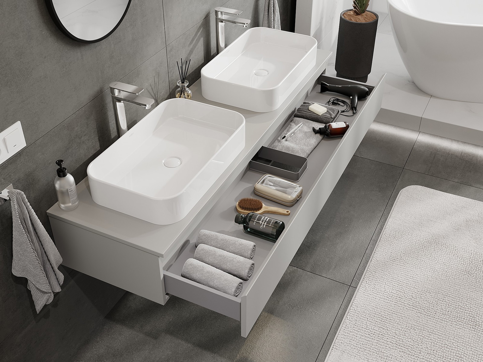 Pateicoties izturīgiem materiāliem, precīzai izpildei un mūsdienīgiem tehnoloģiskiem risinājumiem, produkts nodrošina lietošanas ērtības, izturību pret mitrumu un temperatūras izmaiņām, kā arī elegantu izskatu, kas atbilst dažādiem vannas istabas stiliem.