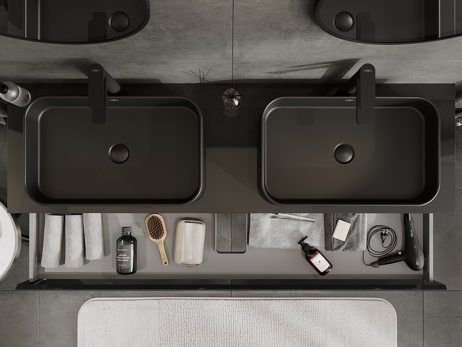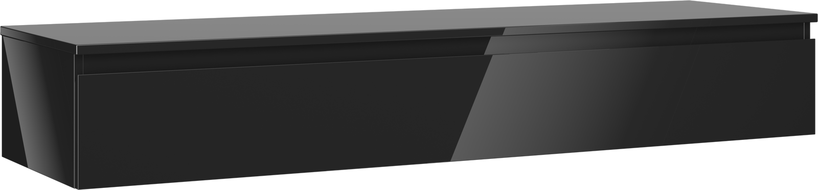Mexen Orio vannas istabas skapis zem izlietnes 160 cm ar galda virsmu, 1 atvilktne, melns spīdums - 91A10-16023-1-BFC70