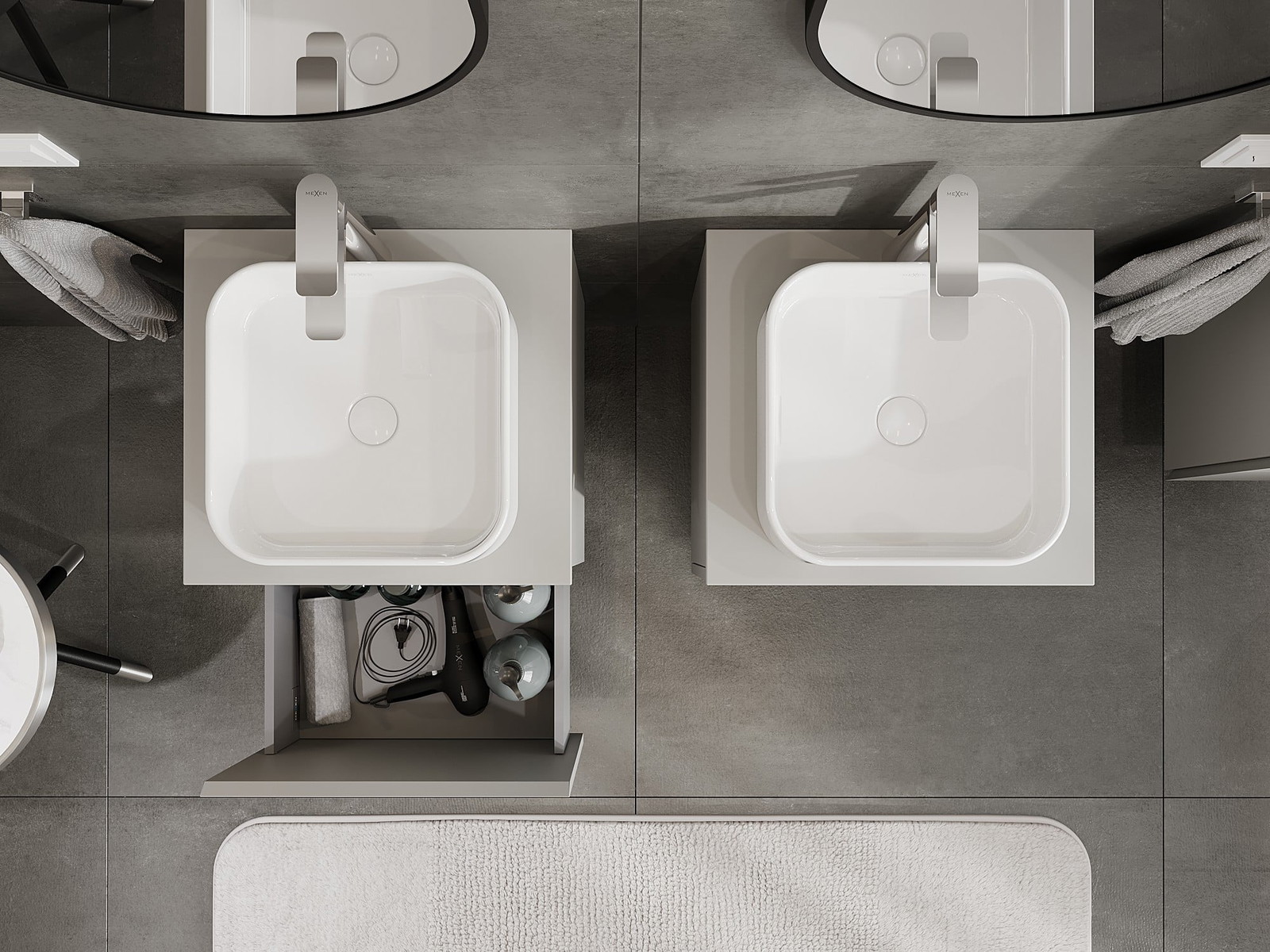 Mexen Orio vannas istabas skapītis zem izlietnes 50 cm ar virsmu, 1 atvilktne, pelēks matēts - 91A10-05047-1-BFC62