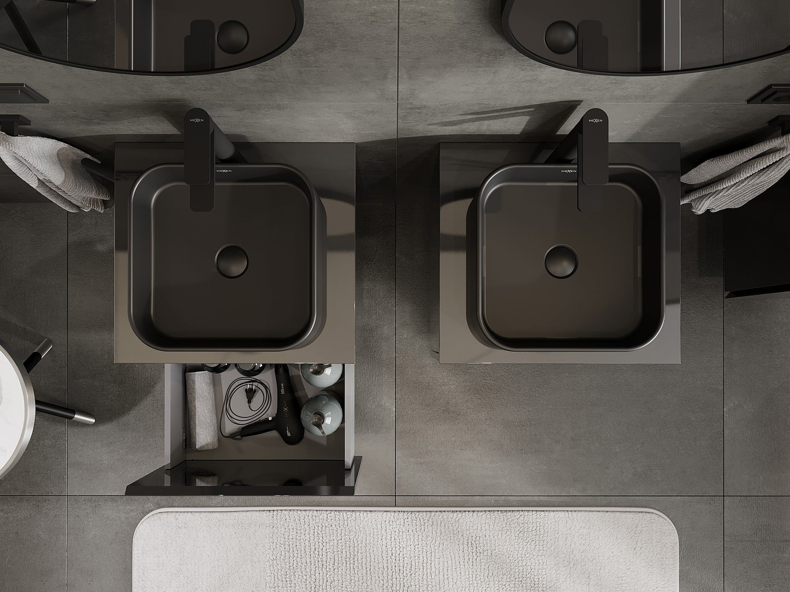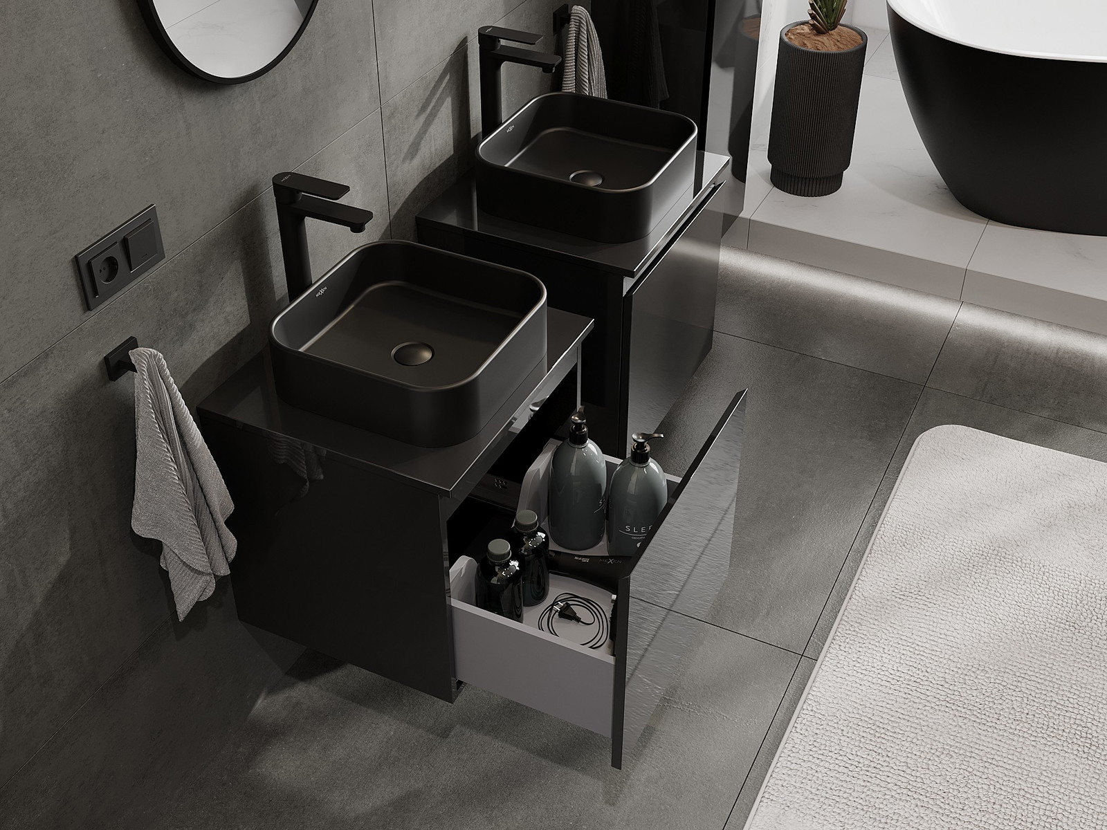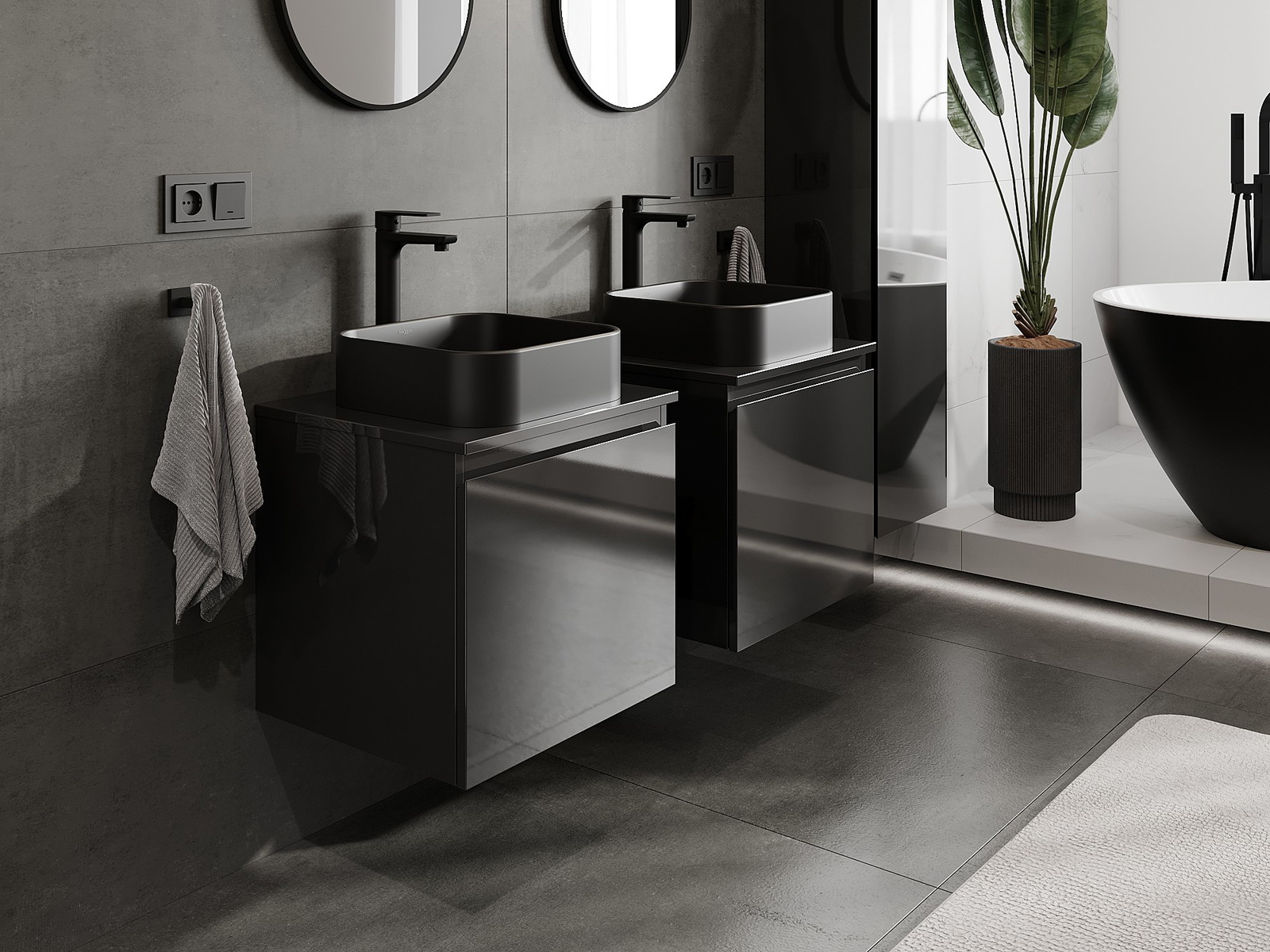 Mexen Orio vannas istabas skapis zem izlietnes 50 cm ar galda virsmu, 1 atvilktne, melns spīdums - 91A10-05047-1-BFC70