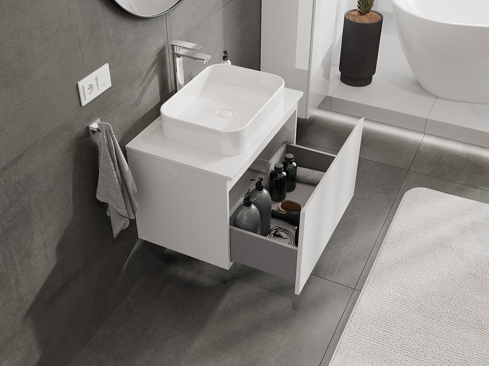 Mūsu modulārās vannas istabas mēbeles var savstarpēji kombinēt dažādās krāsu konfigurācijās, ļaujot pilnīgu personalizāciju. Var izvēlēties gan izskatu, gan atsevišķu elementu funkcijas, kas ļauj pielāgot mēbeles savām stilistiskajām un lietotāju vēlmēm.