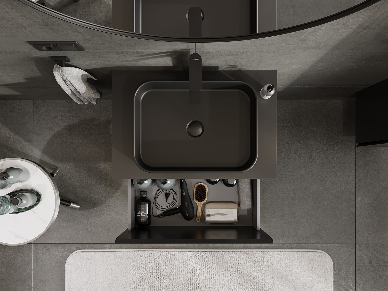 Mexen Orio vannas istabas skapītis zem izlietnes, 70 cm ar darba virsmu, 1 atvilktne, melns matēts - 91A10-07047-1-BFC71