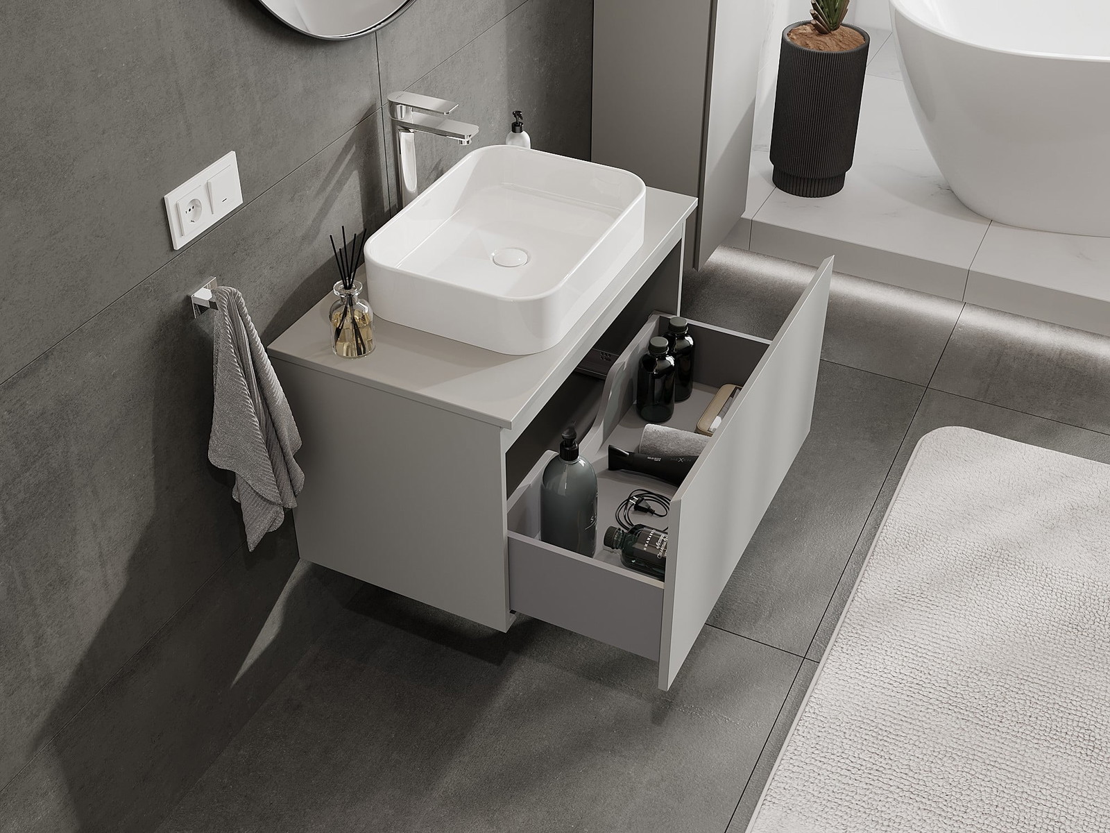 Pateicoties izturīgiem materiāliem, precīzai izpildei un mūsdienīgiem tehnoloģiskiem risinājumiem, produkts nodrošina lietošanas ērtības, izturību pret mitrumu un temperatūras izmaiņām, kā arī elegantu izskatu, kas atbilst dažādiem vannas istabas stiliem.