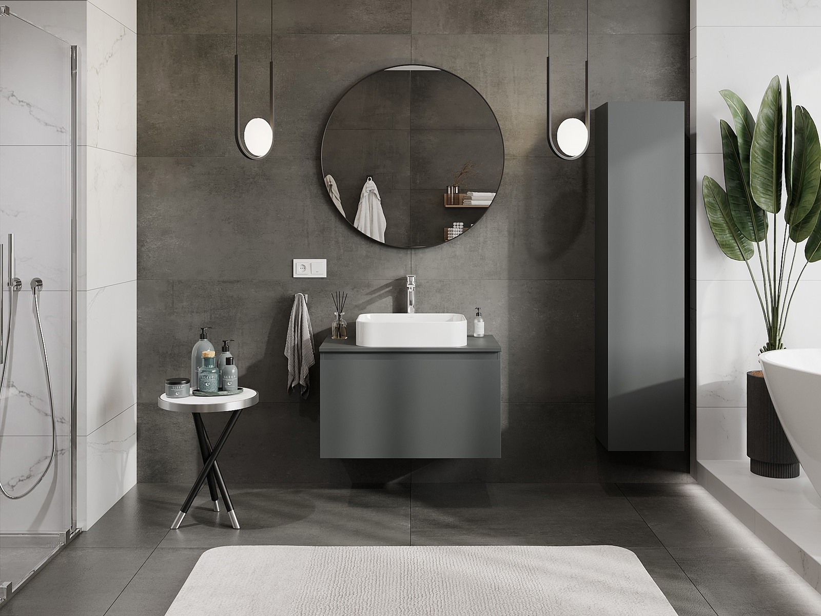 Mexen Orio vannas istabas skapītis zem izlietnes 80 cm ar darba virsmu, 1 atvilktne, matēts grafīts - 91A10-08047-1-BFC66