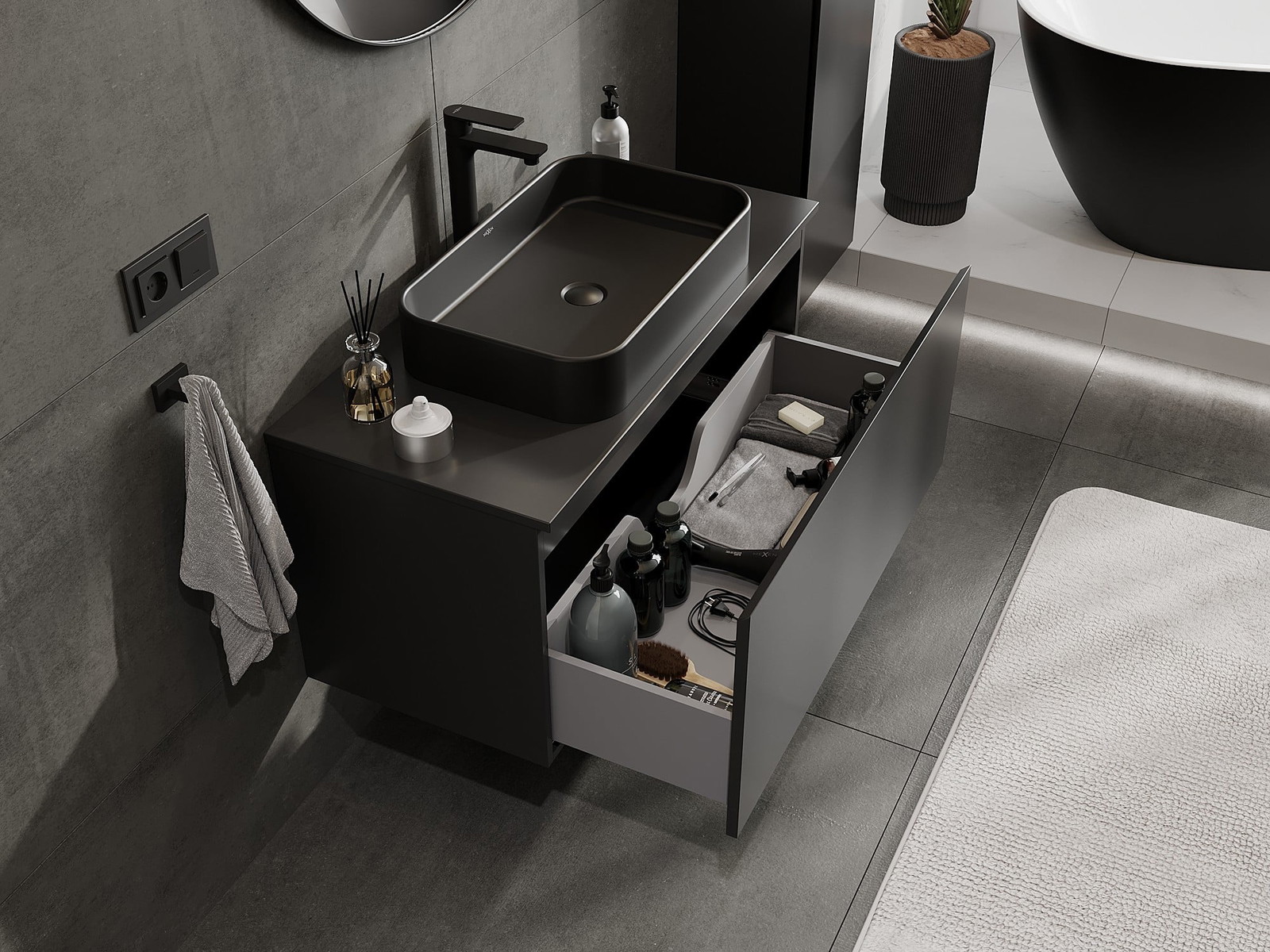 Izgriezums atvilktnē ir veidots tā, lai tajā varētu ietilpt sifons, kas ir nepieciešams izlietņu uzstādīšanā. Pateicoties tam, mēbele var tikt pilnībā funkcionāli uzstādīta, neatstājot ievērojamu vietu atvilktnē instalācijai.