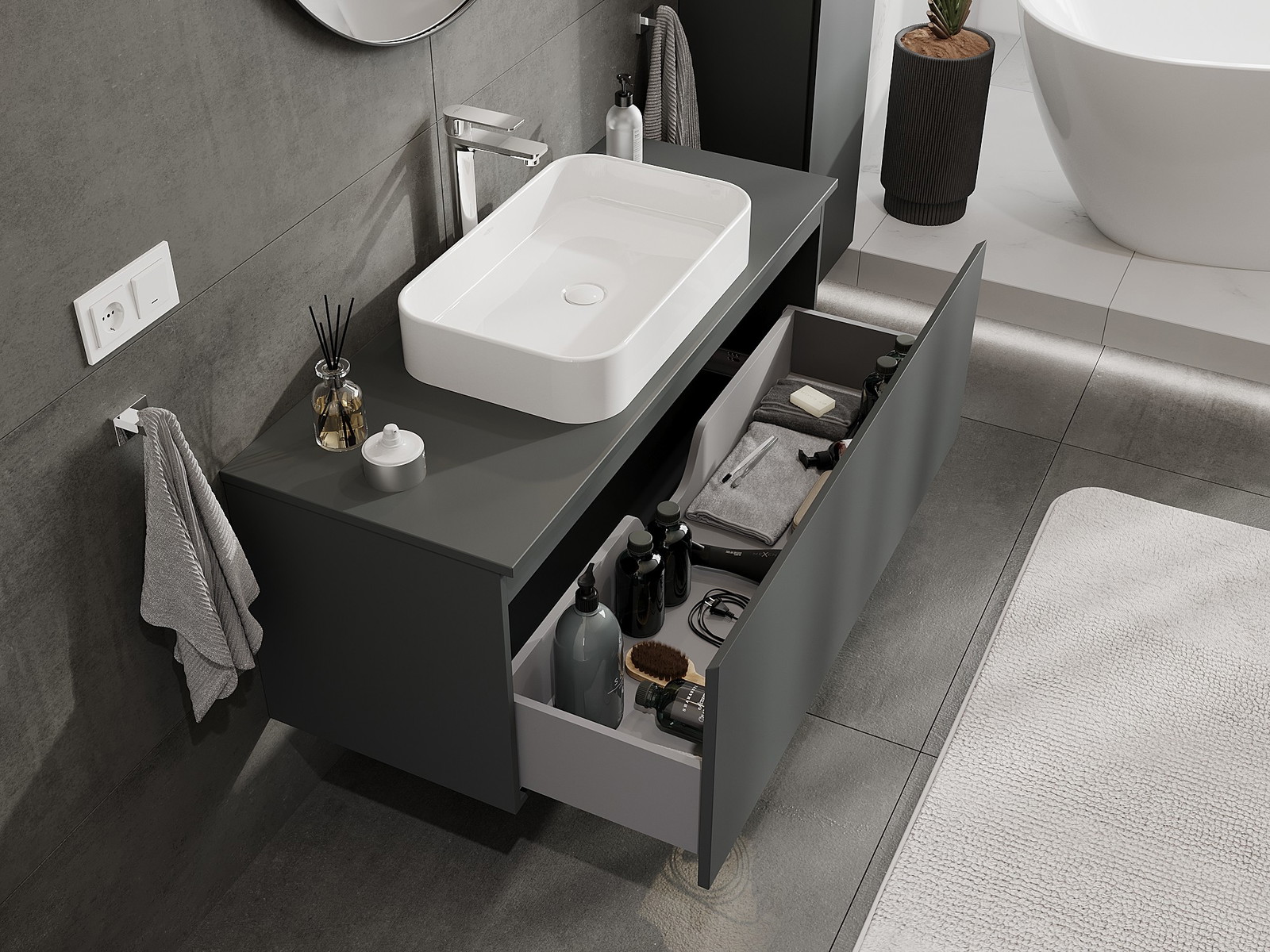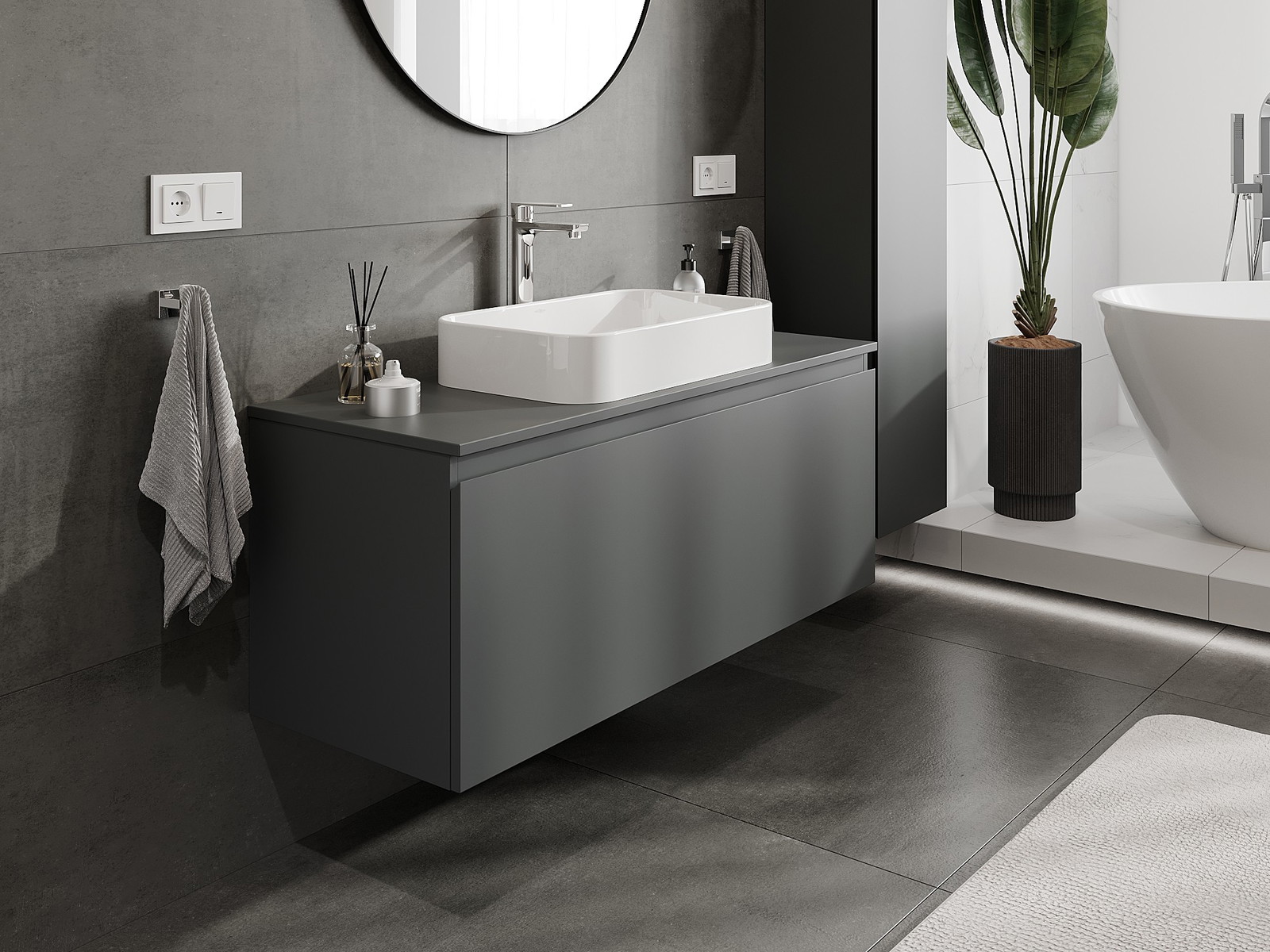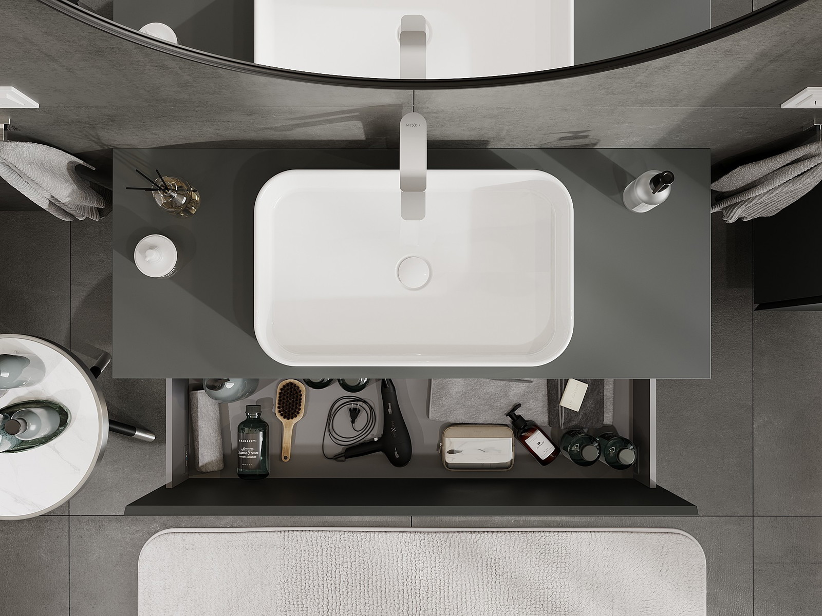 Mexen Orio vannas istabas skapis zem izlietnes 120 cm ar darba virsmu, 1 atvilktne, matēts grafīts - 91A10-12047-1-BFC66