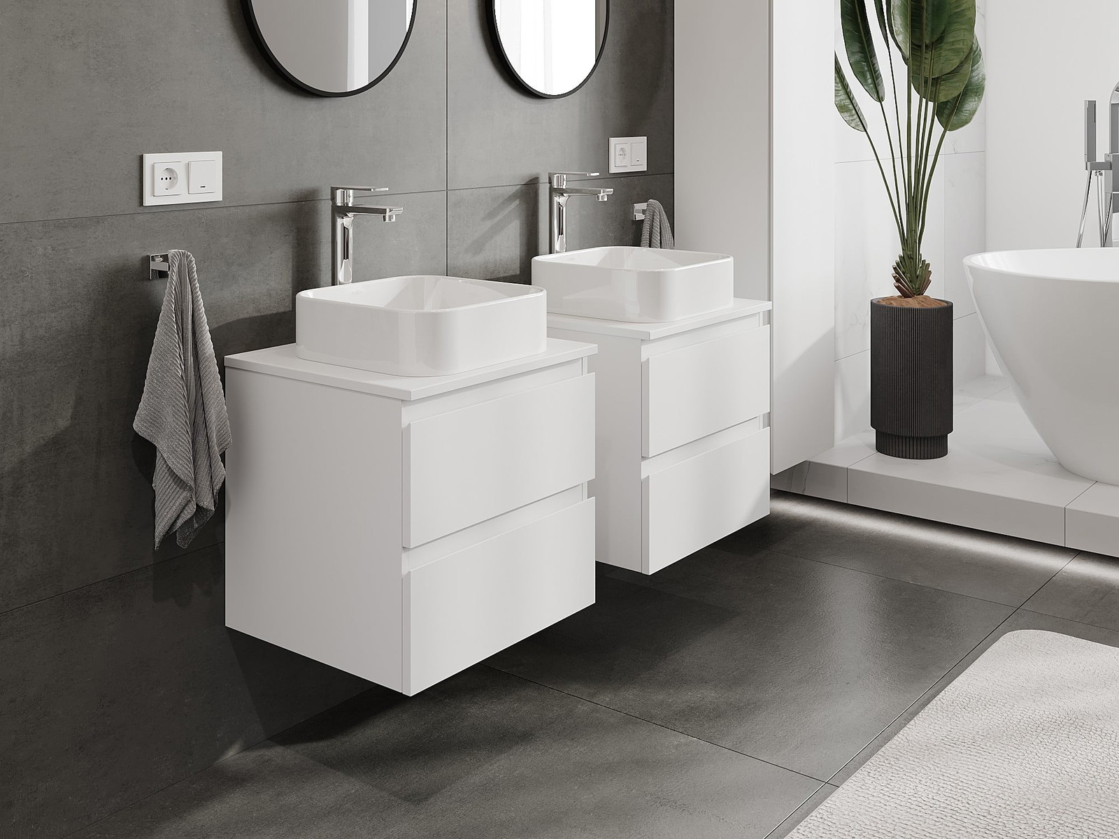 Mexen Orio vannas istabas skapītis zem izlietnes, 50 cm ar galda virsmu, 2 atvilktnes, balts mats - 91A10-05047-2-BFFC01