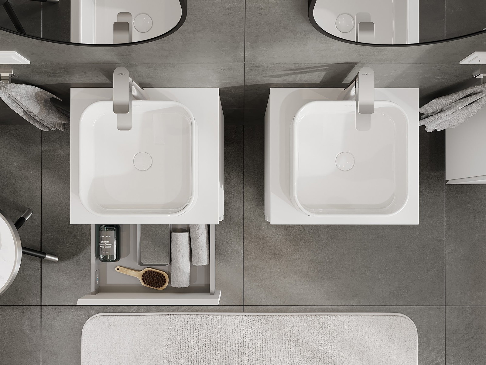 Mūsu modulārās vannas istabas mēbeles var savstarpēji kombinēt dažādās krāsu konfigurācijās, ļaujot pilnīgu personalizāciju. Var izvēlēties gan izskatu, gan atsevišķu elementu funkcijas, kas ļauj pielāgot mēbeles savām stilistiskajām un lietotāju vēlmēm.
