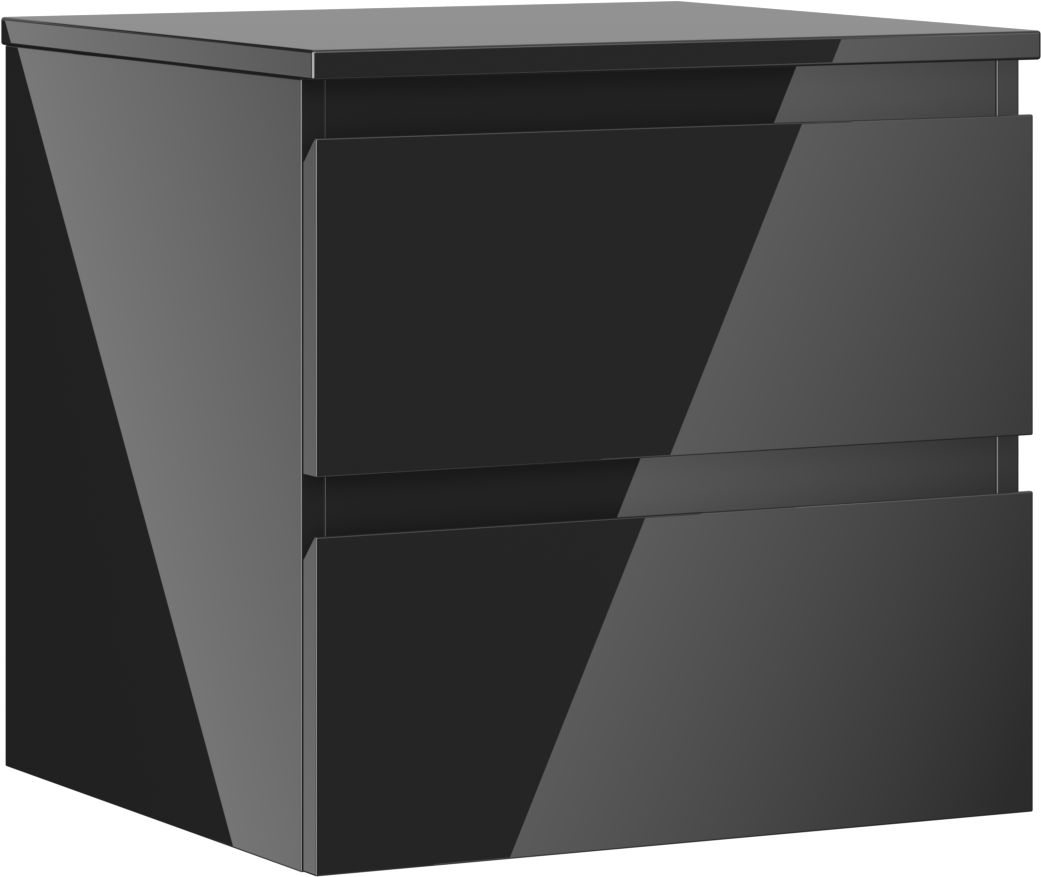 Mexen Orio vannas istabas skapītis zem izlietnes 50 cm ar galda virsmu, 2 atvilktnes, melns spīdums - 91A10-05047-2-BFFC70
