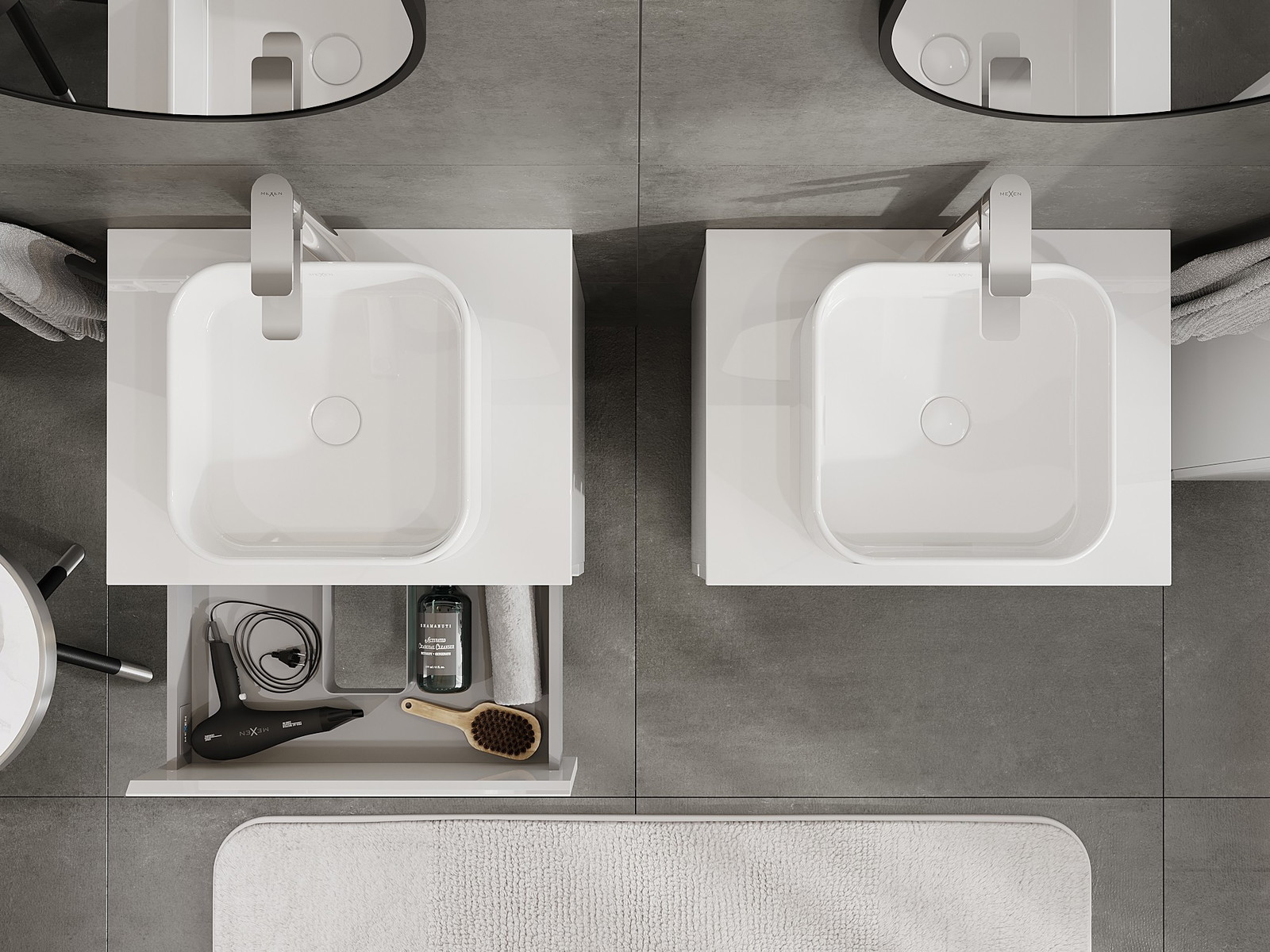 Mexen Orio vannas istabas skapītis zem izlietnes 60 cm ar galda virsmu, 2 atvilktnes, balts spīdums - 91A10-06047-2-BFFC00