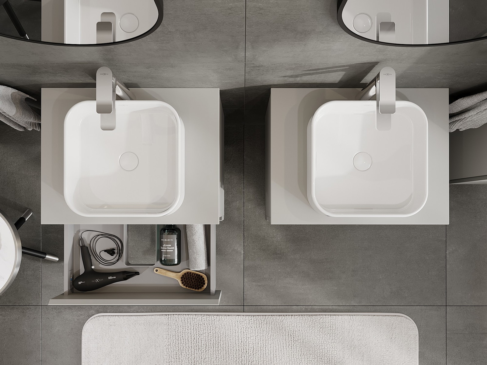 Izgriezums atvilktnē ir veidots tā, lai tajā varētu ietilpt sifons, kas ir nepieciešams izlietņu uzstādīšanā. Pateicoties tam, mēbele var tikt pilnībā funkcionāli uzstādīta, neatstājot ievērojamu vietu atvilktnē instalācijai.