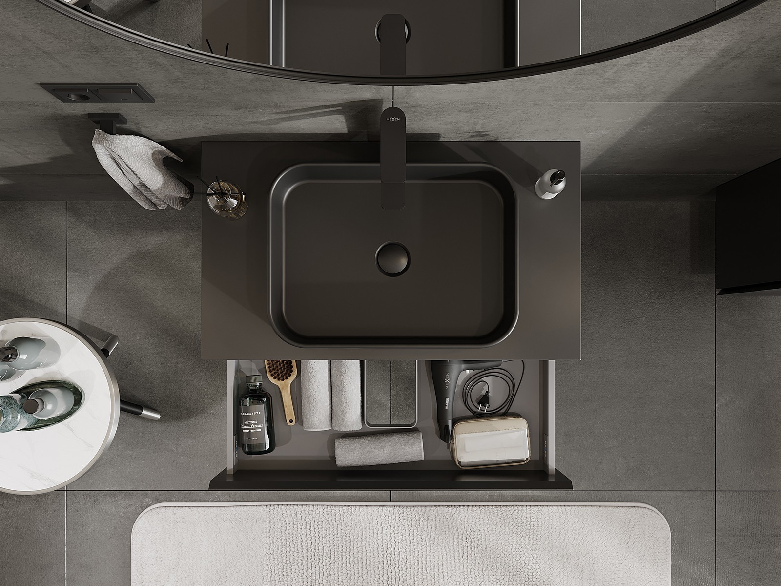Izgriezums atvilktnē ir veidots tā, lai tajā varētu ietilpt sifons, kas ir nepieciešams izlietņu uzstādīšanā. Pateicoties tam, mēbele var tikt pilnībā funkcionāli uzstādīta, neatstājot ievērojamu vietu atvilktnē instalācijai.
