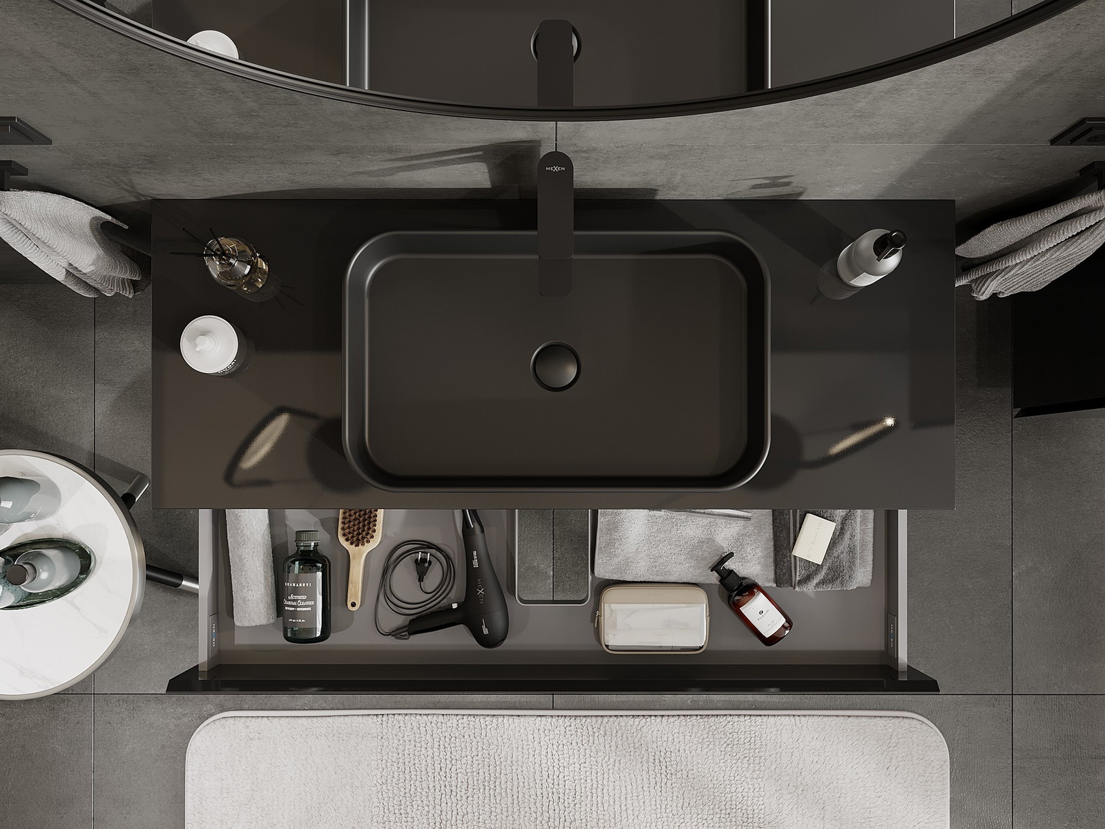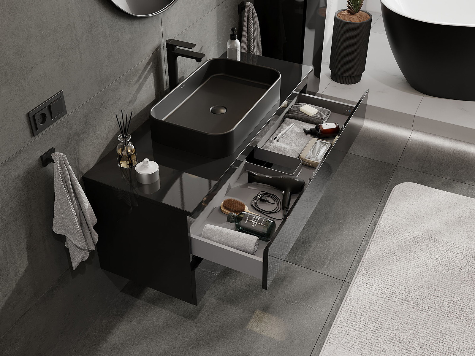 Izgriezums atvilktnē ir veidots tā, lai tajā varētu ietilpt sifons, kas ir nepieciešams izlietņu uzstādīšanā. Pateicoties tam, mēbele var tikt pilnībā funkcionāli uzstādīta, neatstājot ievērojamu vietu atvilktnē instalācijai.