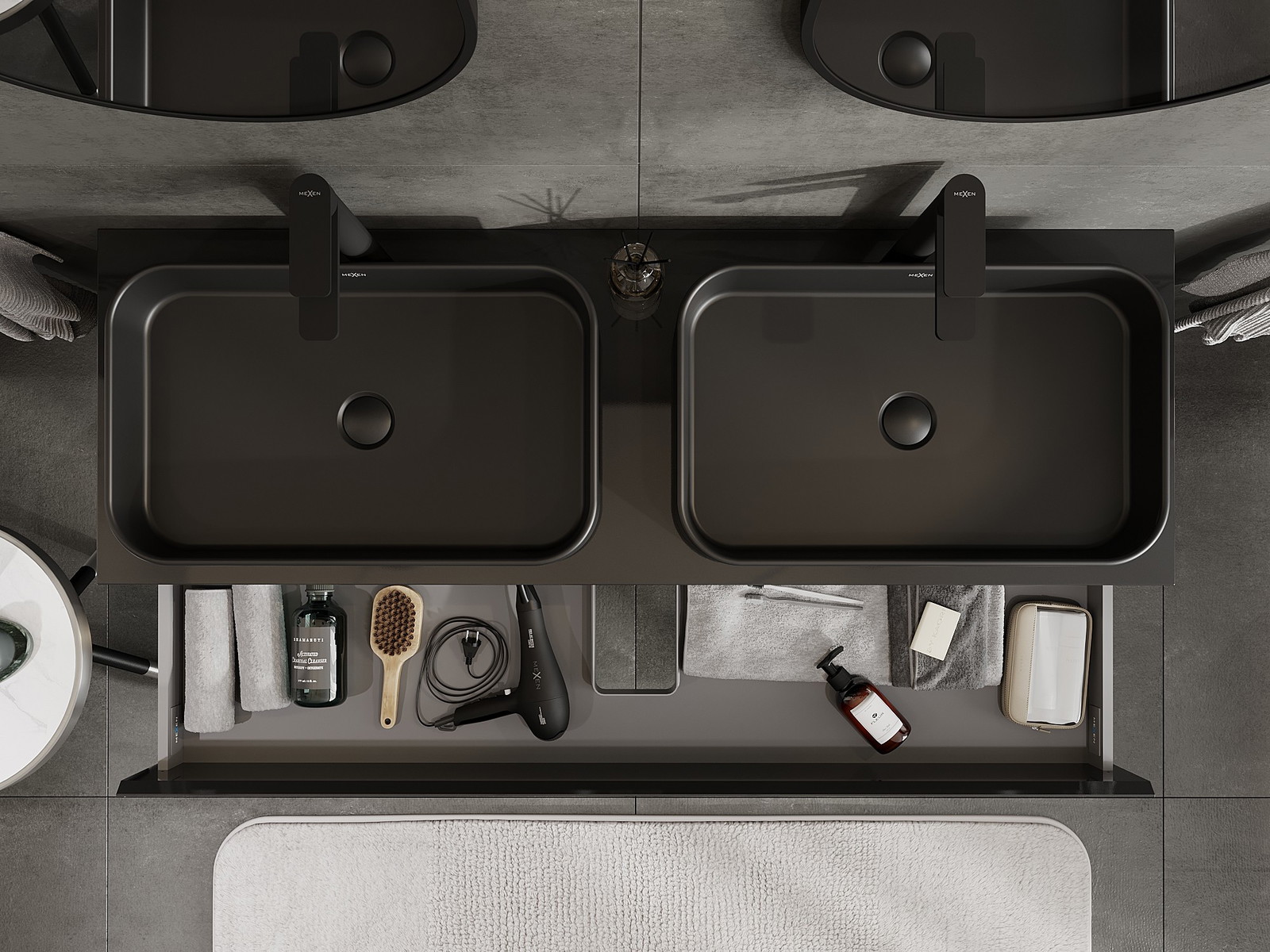 Izgriezums atvilktnē ir veidots tā, lai tajā varētu ietilpt sifons, kas ir nepieciešams izlietņu uzstādīšanā. Pateicoties tam, mēbele var tikt pilnībā funkcionāli uzstādīta, neatstājot ievērojamu vietu atvilktnē instalācijai.