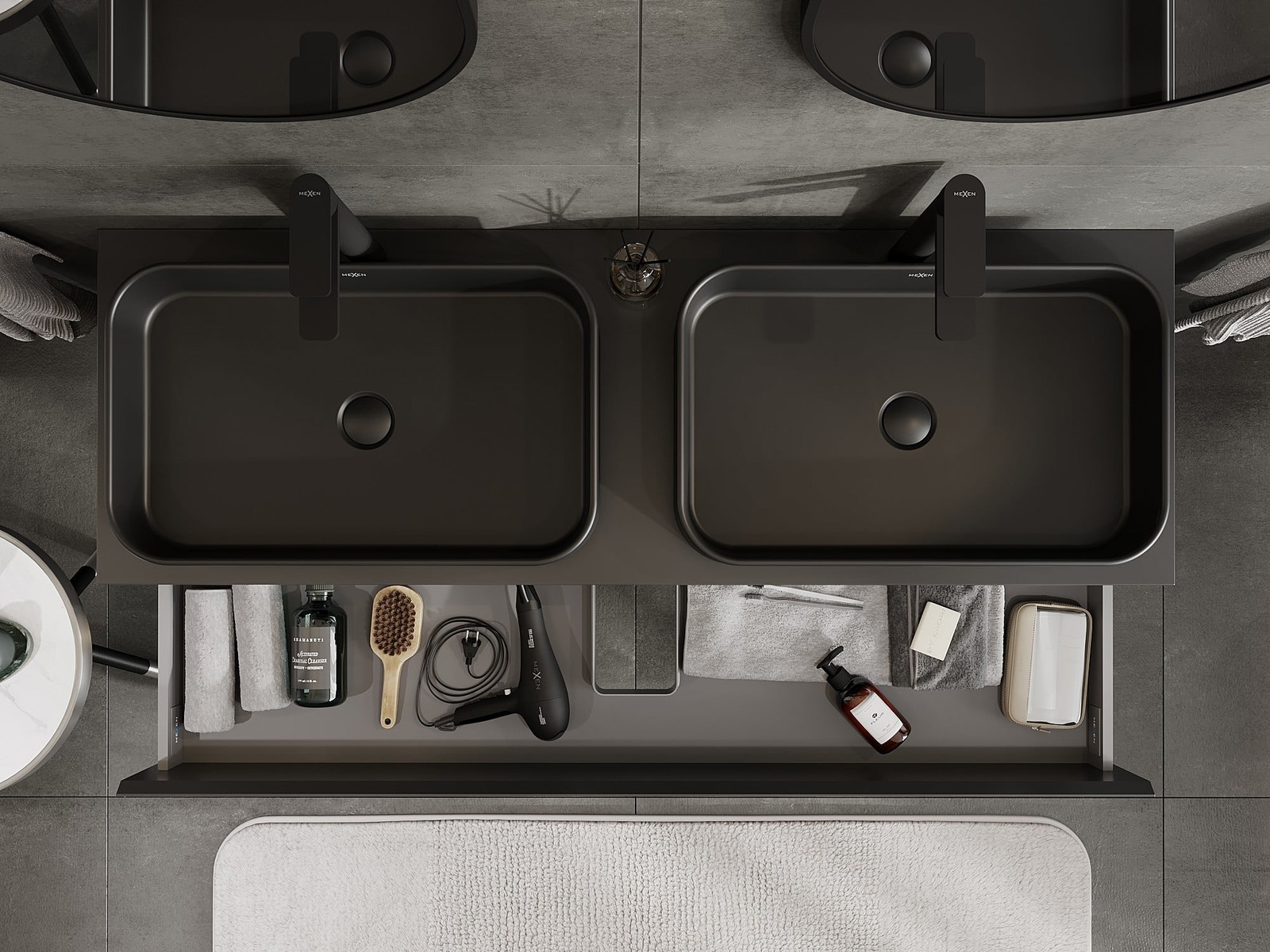 Izgriezums atvilktnē ir veidots tā, lai tajā varētu ietilpt sifons, kas ir nepieciešams izlietņu uzstādīšanā. Pateicoties tam, mēbele var tikt pilnībā funkcionāli uzstādīta, neatstājot ievērojamu vietu atvilktnē instalācijai.