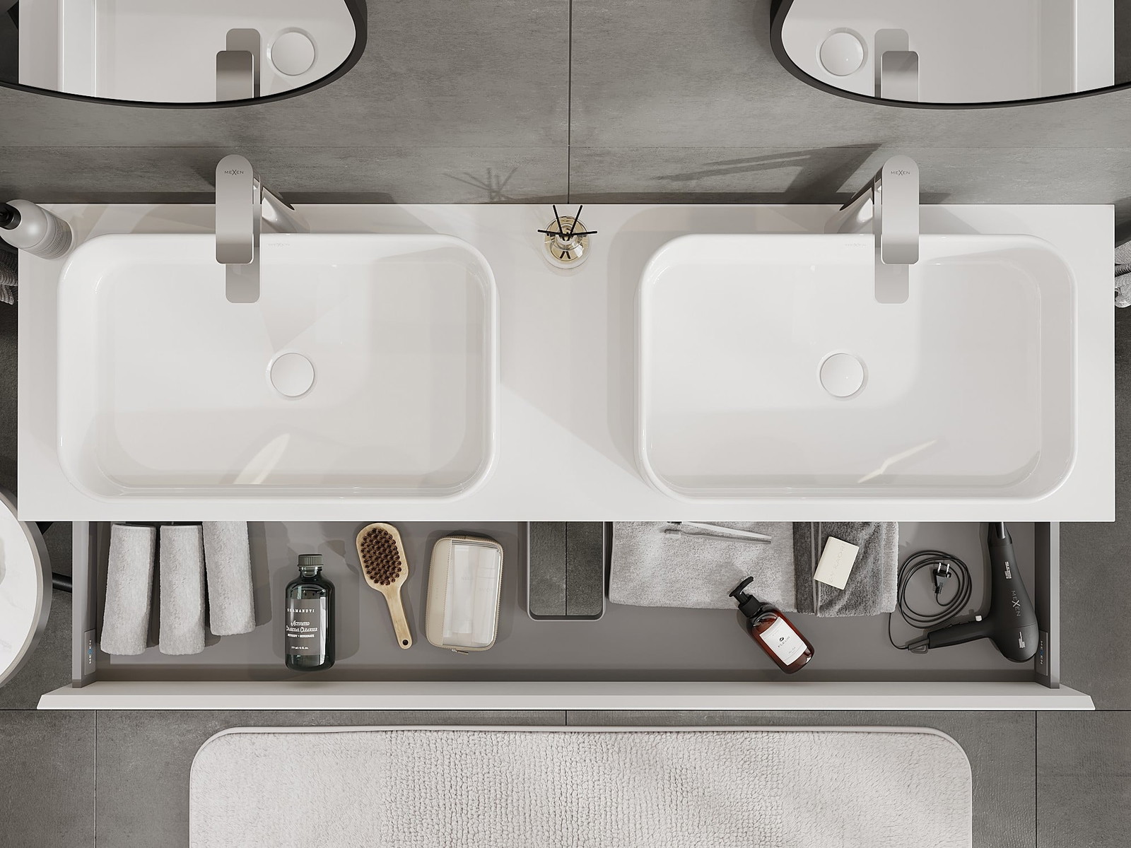 Mūsu modulārās vannas istabas mēbeles var savstarpēji kombinēt dažādās krāsu konfigurācijās, ļaujot pilnīgu personalizāciju. Var izvēlēties gan izskatu, gan atsevišķu elementu funkcijas, kas ļauj pielāgot mēbeles savām stilistiskajām un lietotāju vēlmēm.
