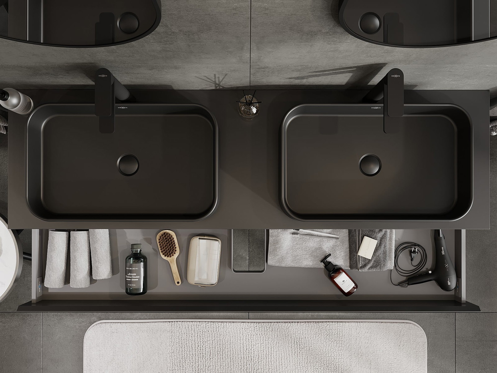 Izgriezums atvilktnē ir veidots tā, lai tajā varētu ietilpt sifons, kas ir nepieciešams izlietņu uzstādīšanā. Pateicoties tam, mēbele var tikt pilnībā funkcionāli uzstādīta, neatstājot ievērojamu vietu atvilktnē instalācijai.