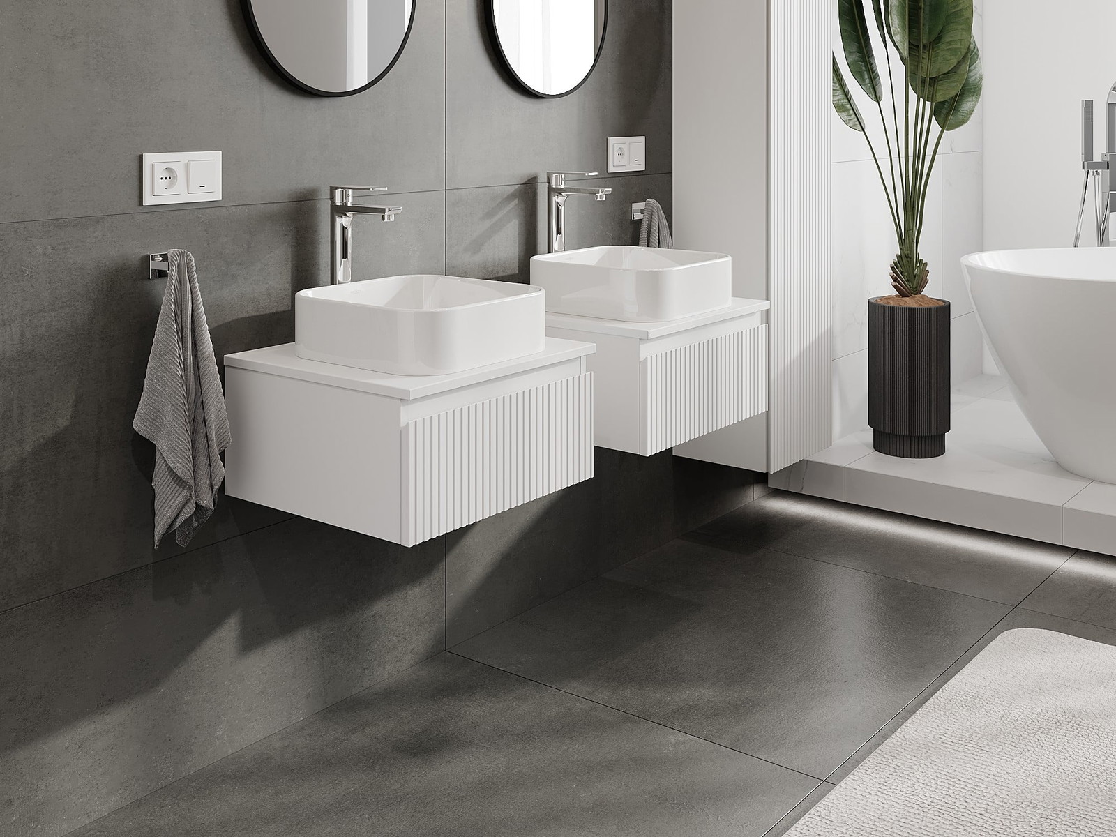 Mexen Rivel vannas istabas skapis izlietnei 50 cm ar virsmu, 1 atvilktne, rievots, balts mats - 91A20-05023-1-BFC01
