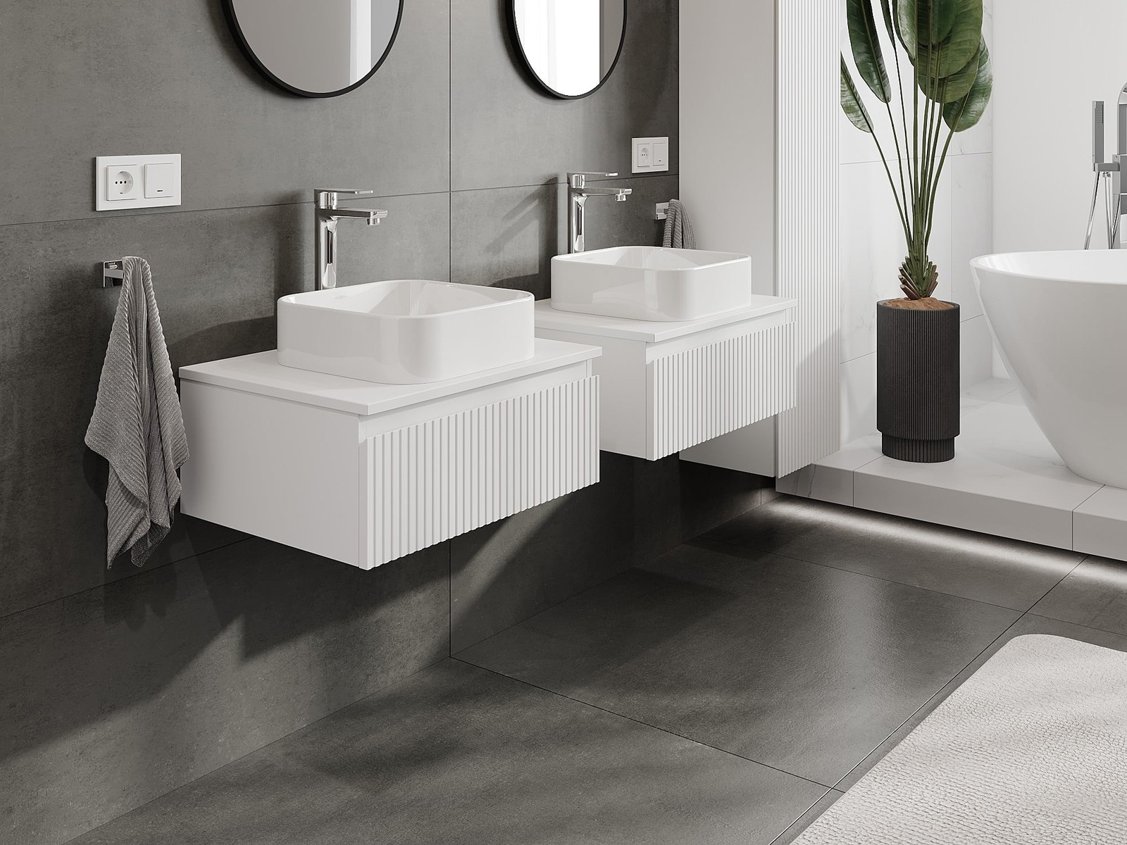 Mūsu modulārās vannas istabas mēbeles var savstarpēji kombinēt dažādās krāsu konfigurācijās, ļaujot pilnīgu personalizāciju. Var izvēlēties gan izskatu, gan atsevišķu elementu funkcijas, kas ļauj pielāgot mēbeles savām stilistiskajām un lietotāju vēlmēm.