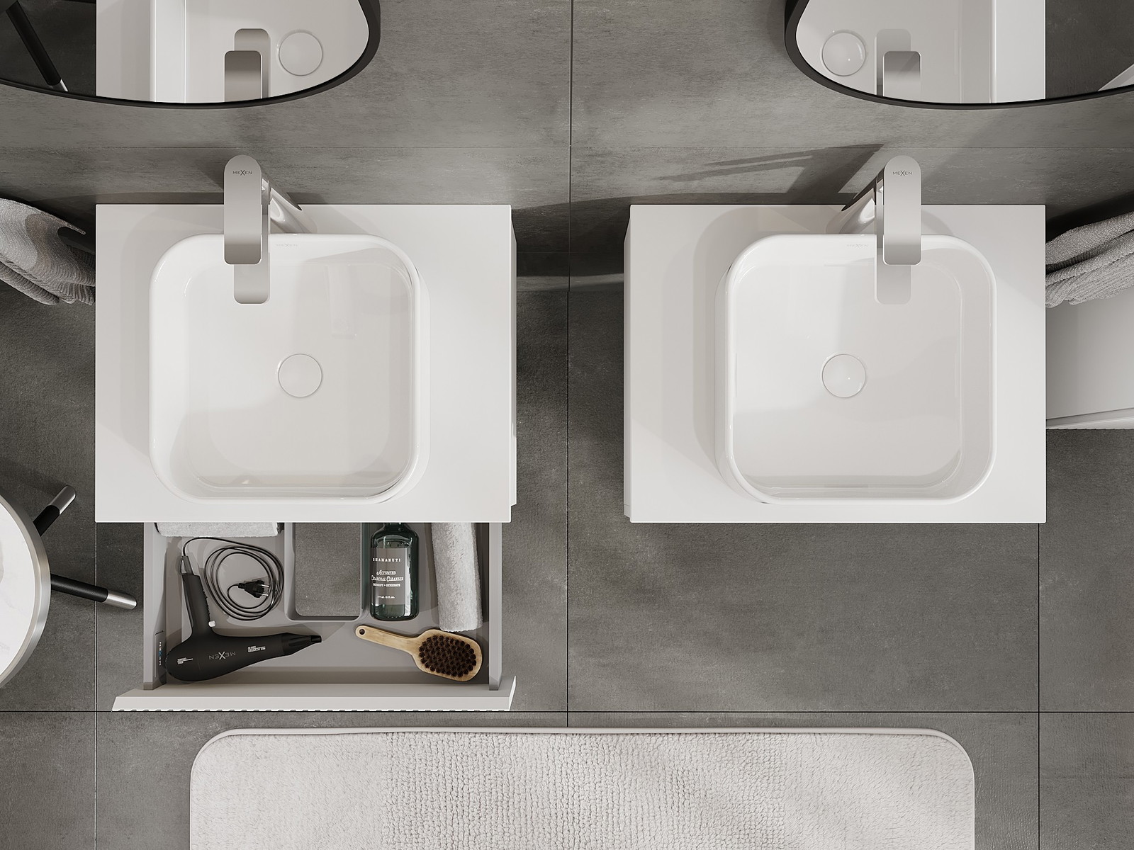 Izgriezums atvilktnē ir veidots tā, lai tajā varētu ietilpt sifons, kas ir nepieciešams izlietņu uzstādīšanā. Pateicoties tam, mēbele var tikt pilnībā funkcionāli uzstādīta, neatstājot ievērojamu vietu atvilktnē instalācijai.
