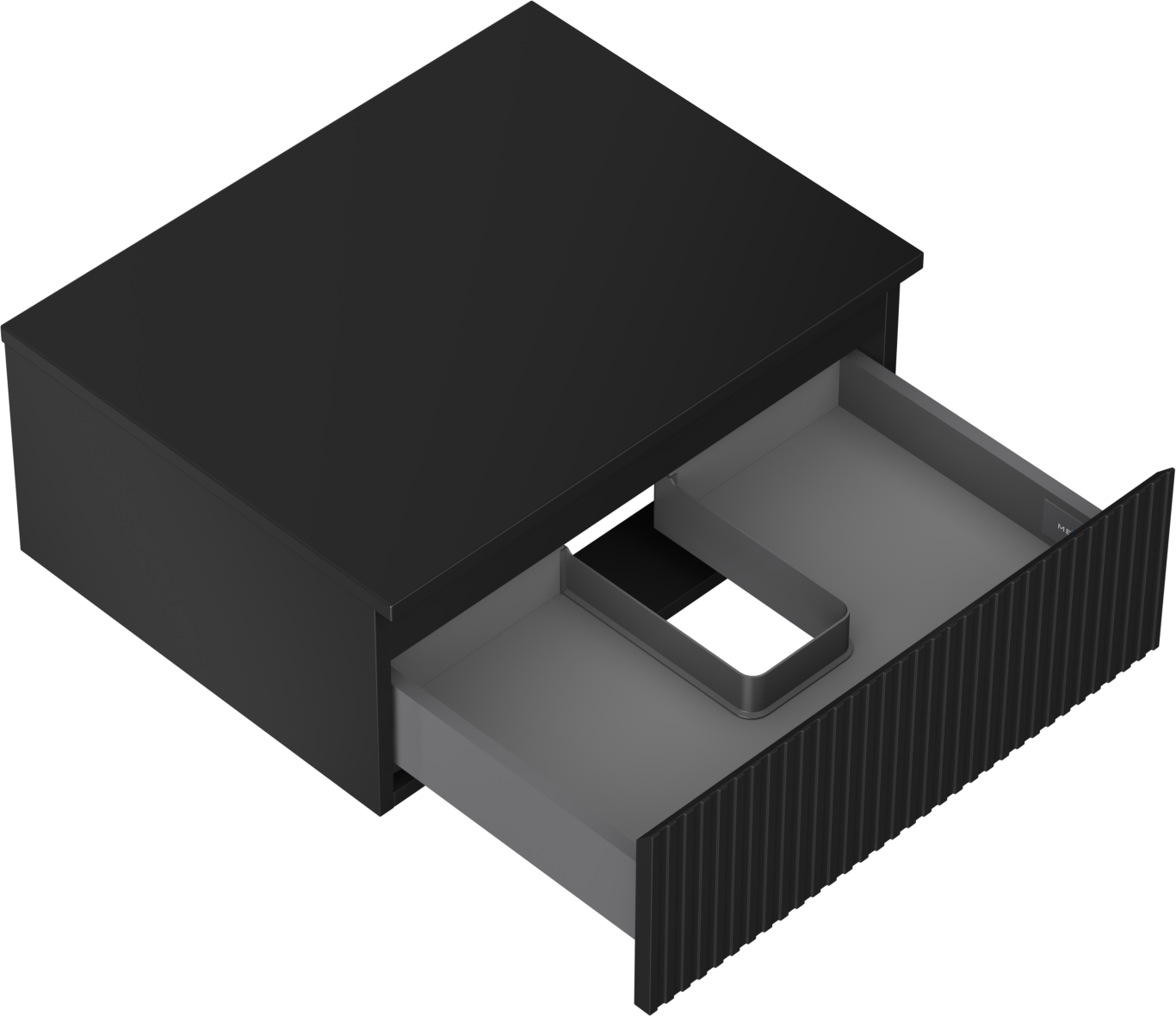 Mexen Rivel vannas istabas skapītis zem izlietnes 60 cm ar virsmu, 1 atvilktne, rievots, melns matēts - 91A20-06023-1-BFC71