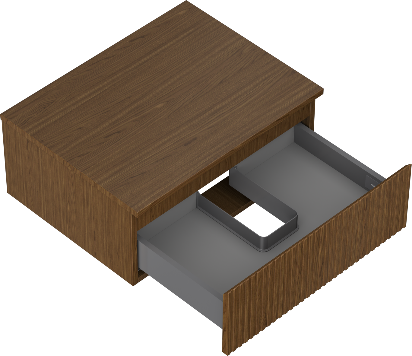 Izgriezums atvilktnē ir veidots tā, lai tajā varētu ietilpt sifons, kas ir nepieciešams izlietņu uzstādīšanā. Pateicoties tam, mēbele var tikt pilnībā funkcionāli uzstādīta, neatstājot ievērojamu vietu atvilktnē instalācijai.