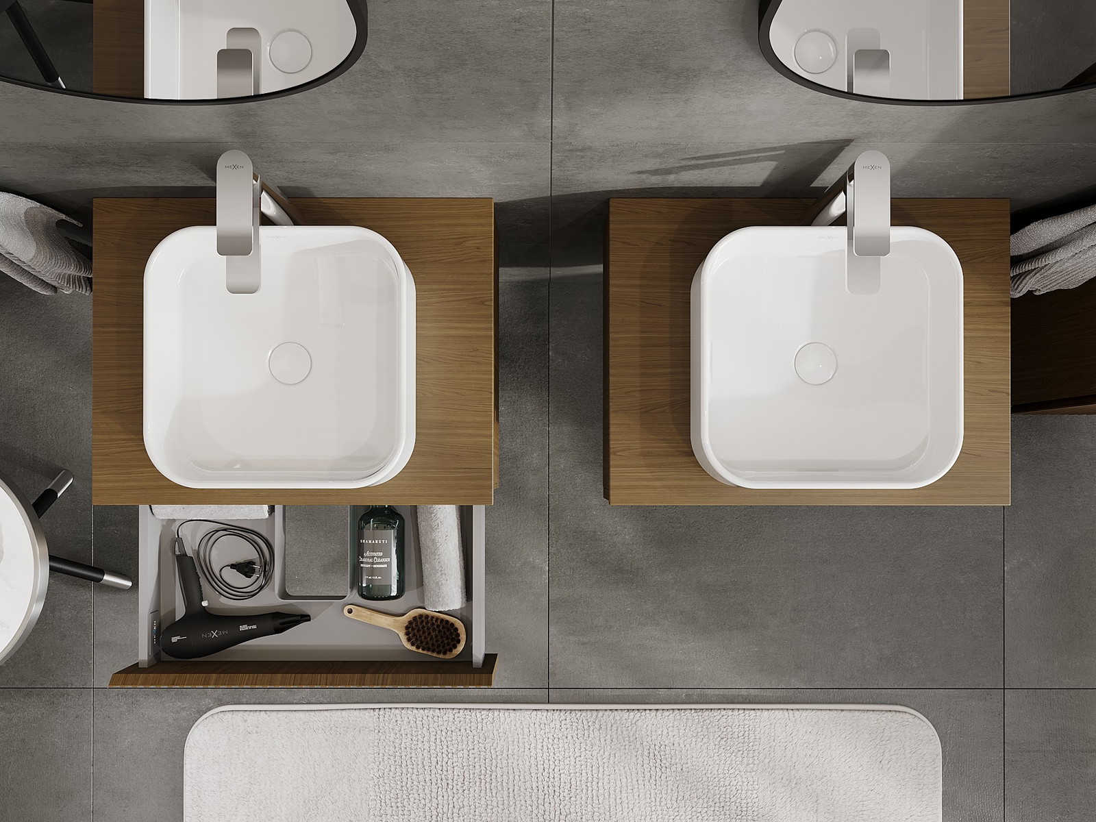 Mexen Rivel vannas istabas skapītis zem izlietnes 60 cm ar galda virsmu, 1 atvilktne, riflēta, rieksts - 91A20-06023-1-BFC86