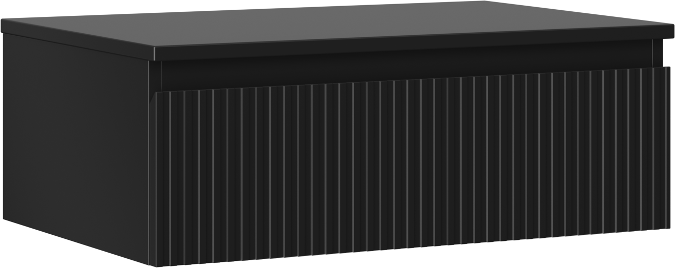 Mexen Rivel vannas istabas skapītis zem izlietnes 70 cm ar virsmu, 1 atvilktne, rievots, melns matēts - 91A20-07023-1-BFC71