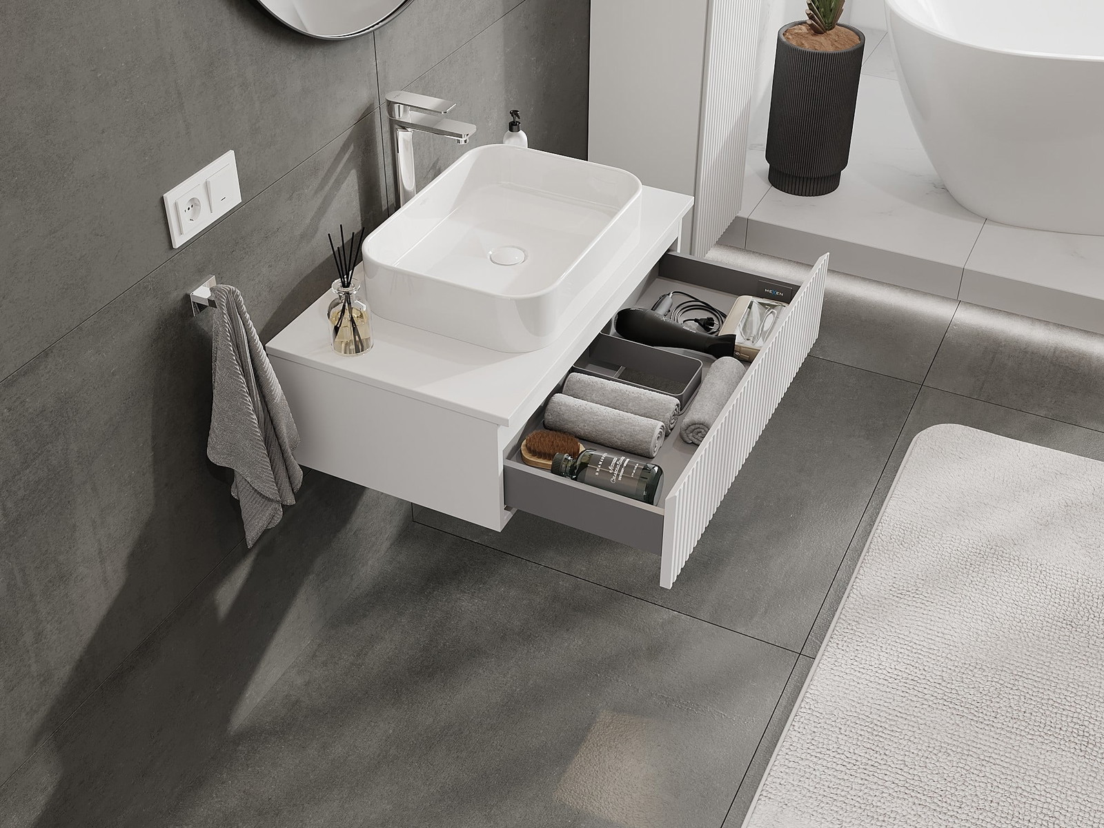 Mexen Rivel vannas istabas izlietnes skapis 80 cm ar virsmu, 1 atvilktne, rievojums, balts mats - 91A20-08023-1-BFC01