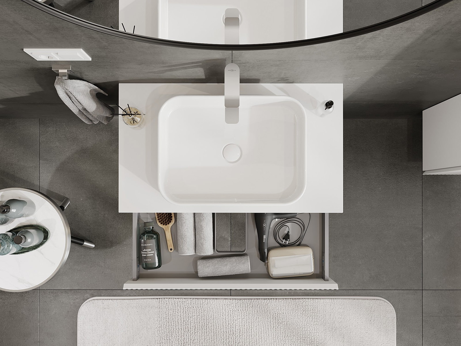 Izgriezums atvilktnē ir veidots tā, lai tajā varētu ietilpt sifons, kas ir nepieciešams izlietņu uzstādīšanā. Pateicoties tam, mēbele var tikt pilnībā funkcionāli uzstādīta, neatstājot ievērojamu vietu atvilktnē instalācijai.