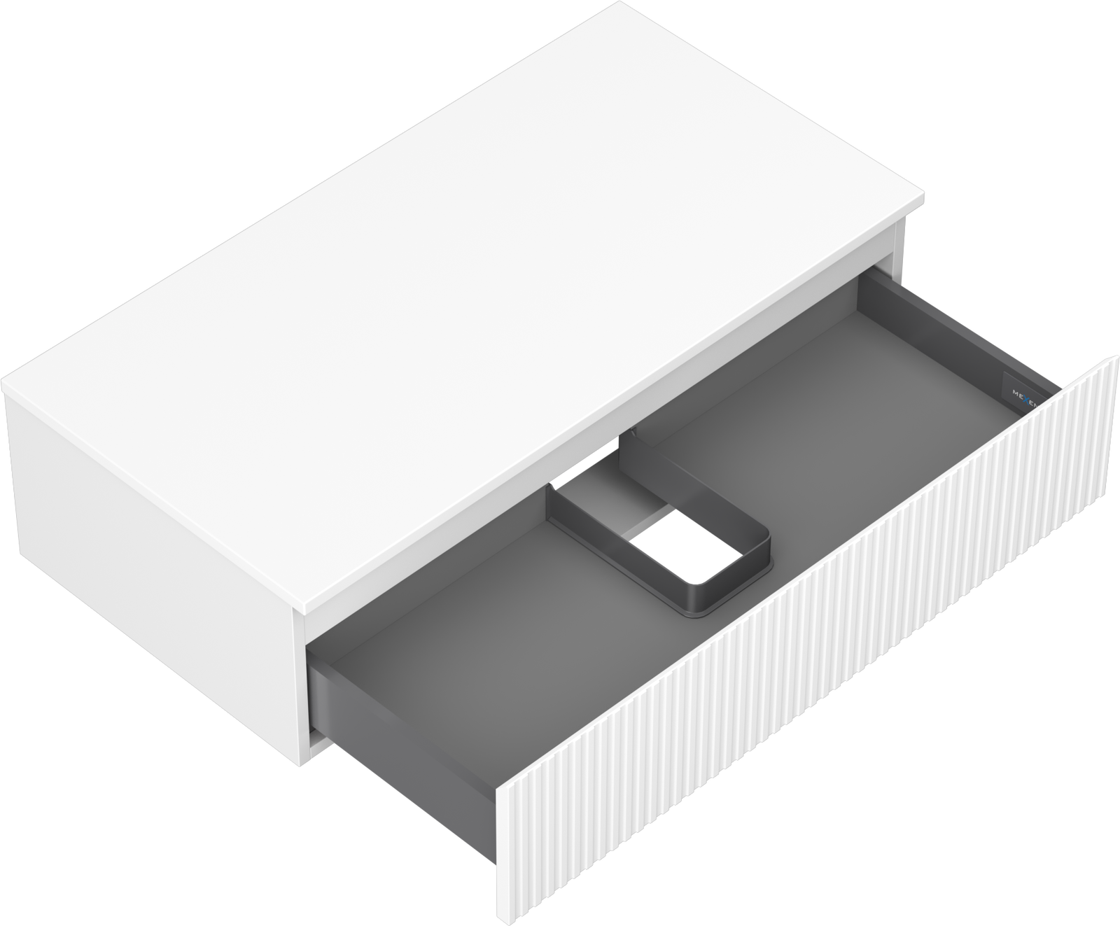 Mexen Rivel 90 cm vannas istabas izlietnes skapītis ar galda virsmu, 1 atvilktne, rievots, balts mats - 91A20-09023-1-BFC01