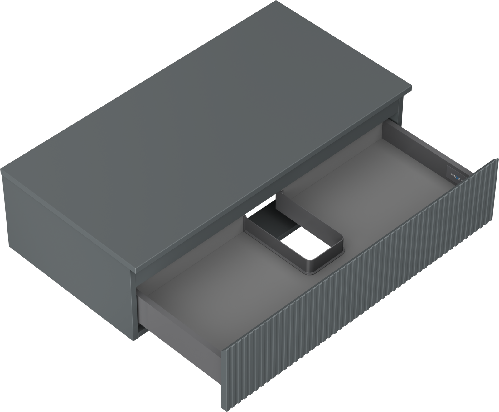 Mexen Rivel vannas istabas skapis zem izlietnes 90 cm ar virsmu, 1 atvilktne, rievots, grafīta matējums - 91A20-09023-1-BFC66