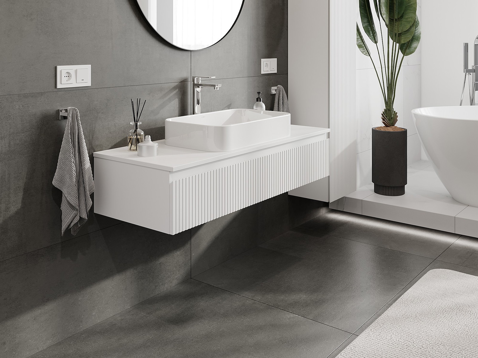 Mexen Rivel vannas istabas skapītis zem izlietnes 120 cm ar virsmu, 1 atvilktne, rievots, balts mats - 91A20-12023-1-BFC01