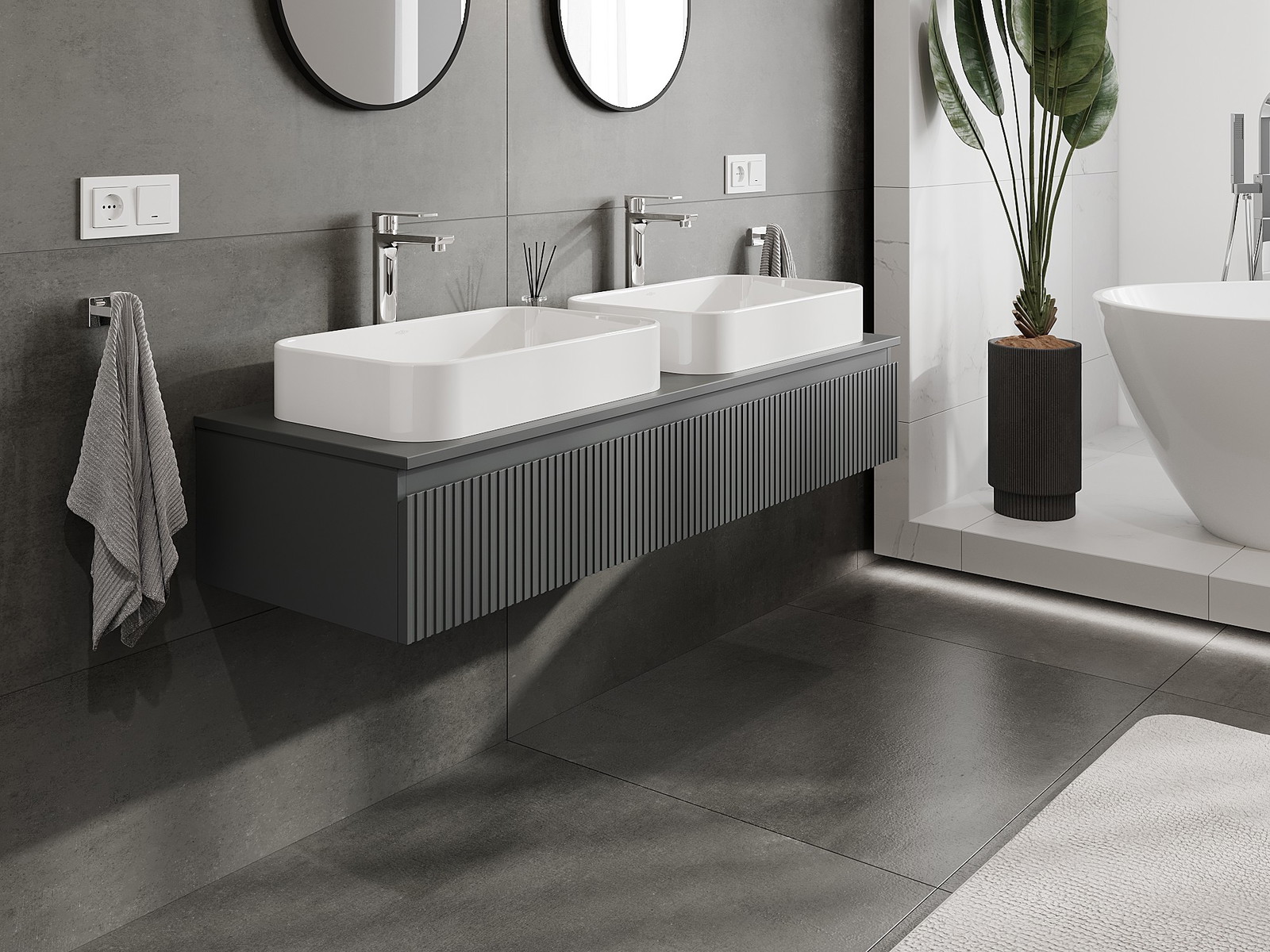 Mexen Rivel vannas istabas skapītis zem izlietnes 140 cm ar galdu, 1 atvilktne, rievots, grafīta mats - 91A20-14023-1-BFC66