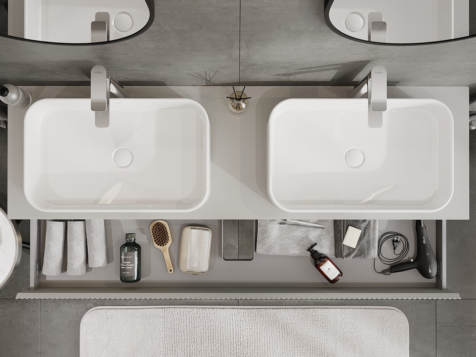Mexen Rivel vannasistabas skapis zem izlietnes ar galda virsmu 160 cm, 1 atvilktne, rievots, pelēks matēts - 91A20-16023-1-BFC62