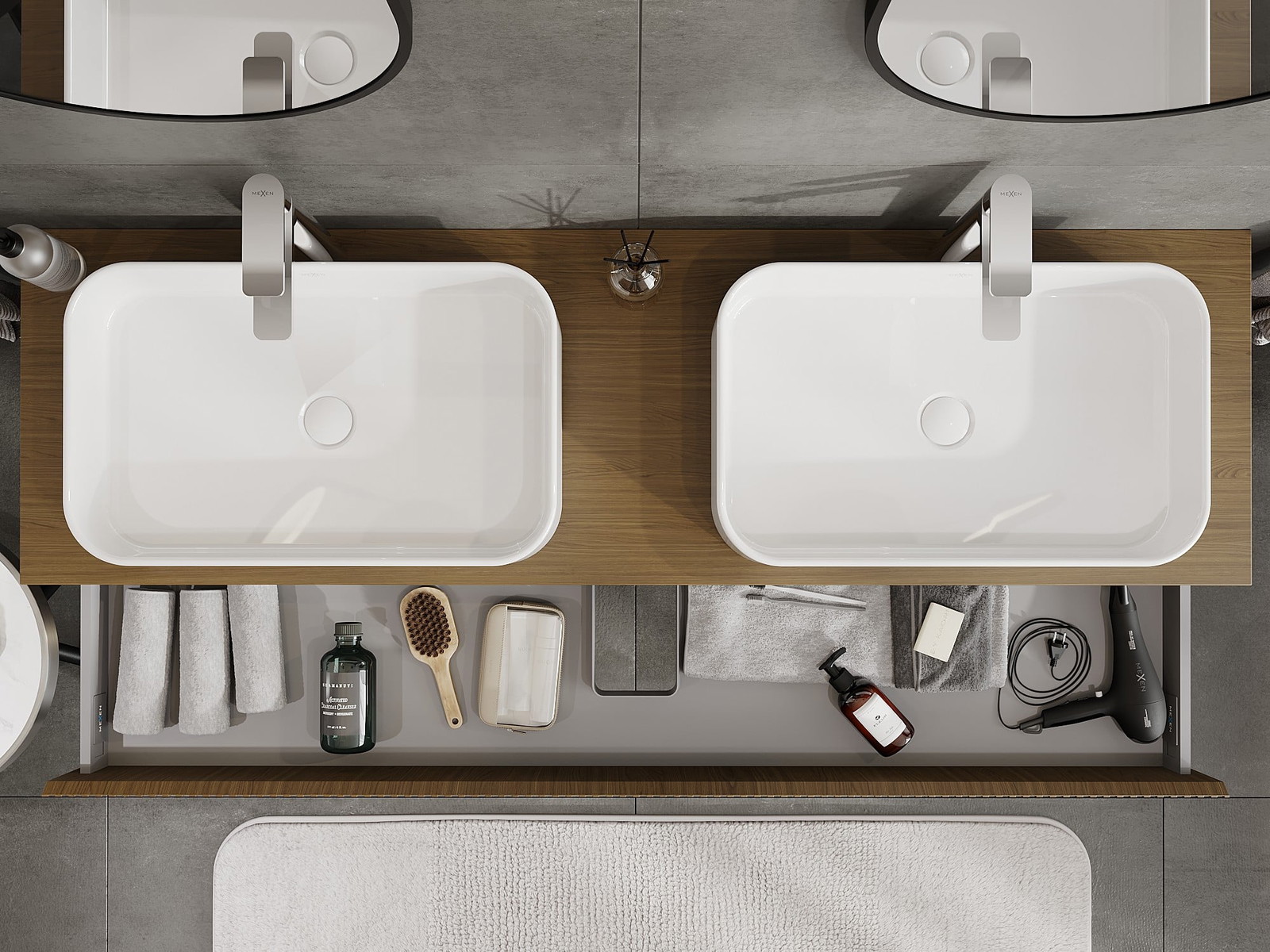 Mexen Rivel vannas istabas skapis zem izlietnes 160 cm ar virsmu, 1 atvilktne, rievots, valrieksts - 91A20-16023-1-BFC86