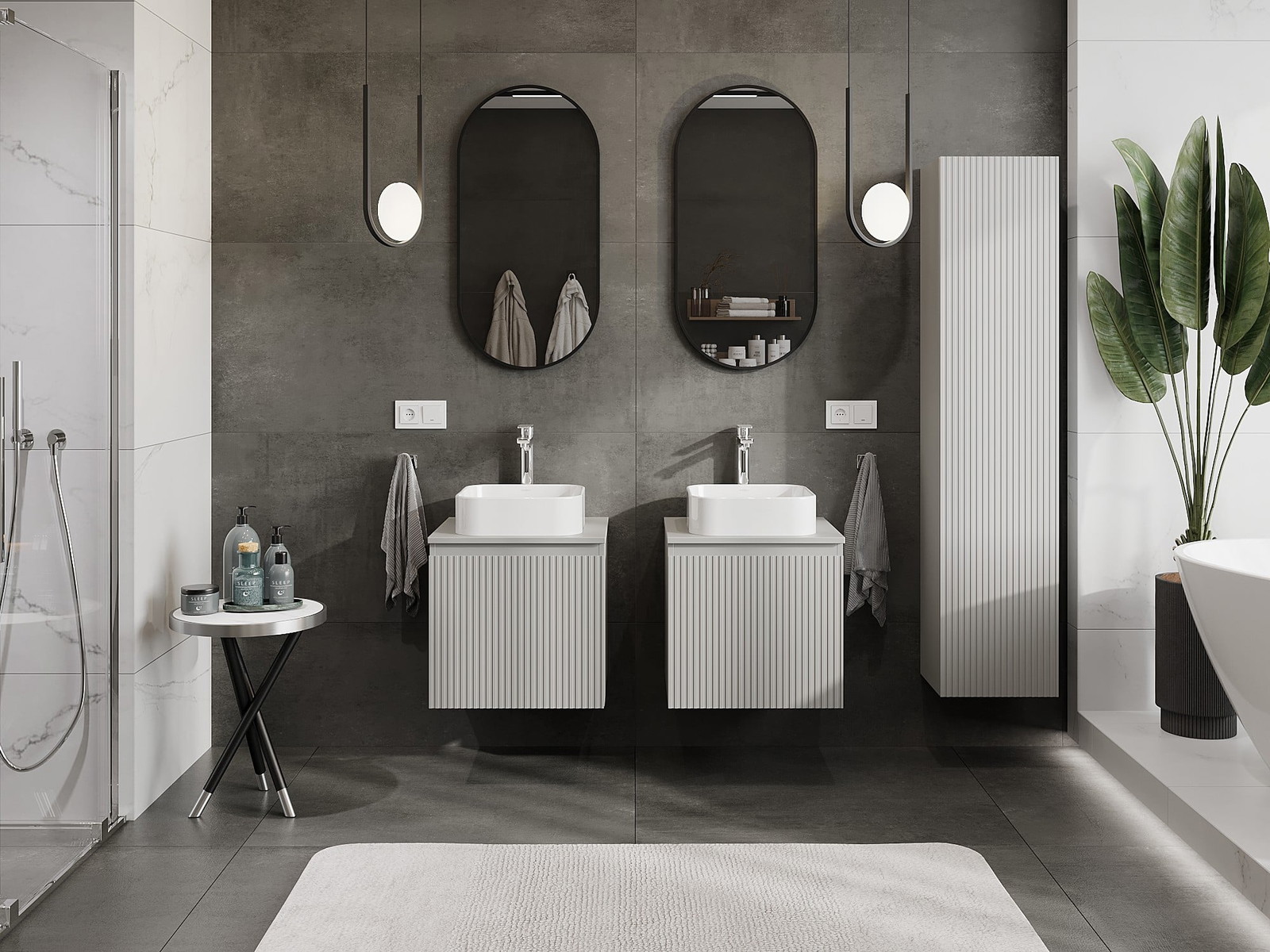 Mūsu modulārās vannas istabas mēbeles var savstarpēji kombinēt dažādās krāsu konfigurācijās, ļaujot pilnīgu personalizāciju. Var izvēlēties gan izskatu, gan atsevišķu elementu funkcijas, kas ļauj pielāgot mēbeles savām stilistiskajām un lietotāju vēlmēm.