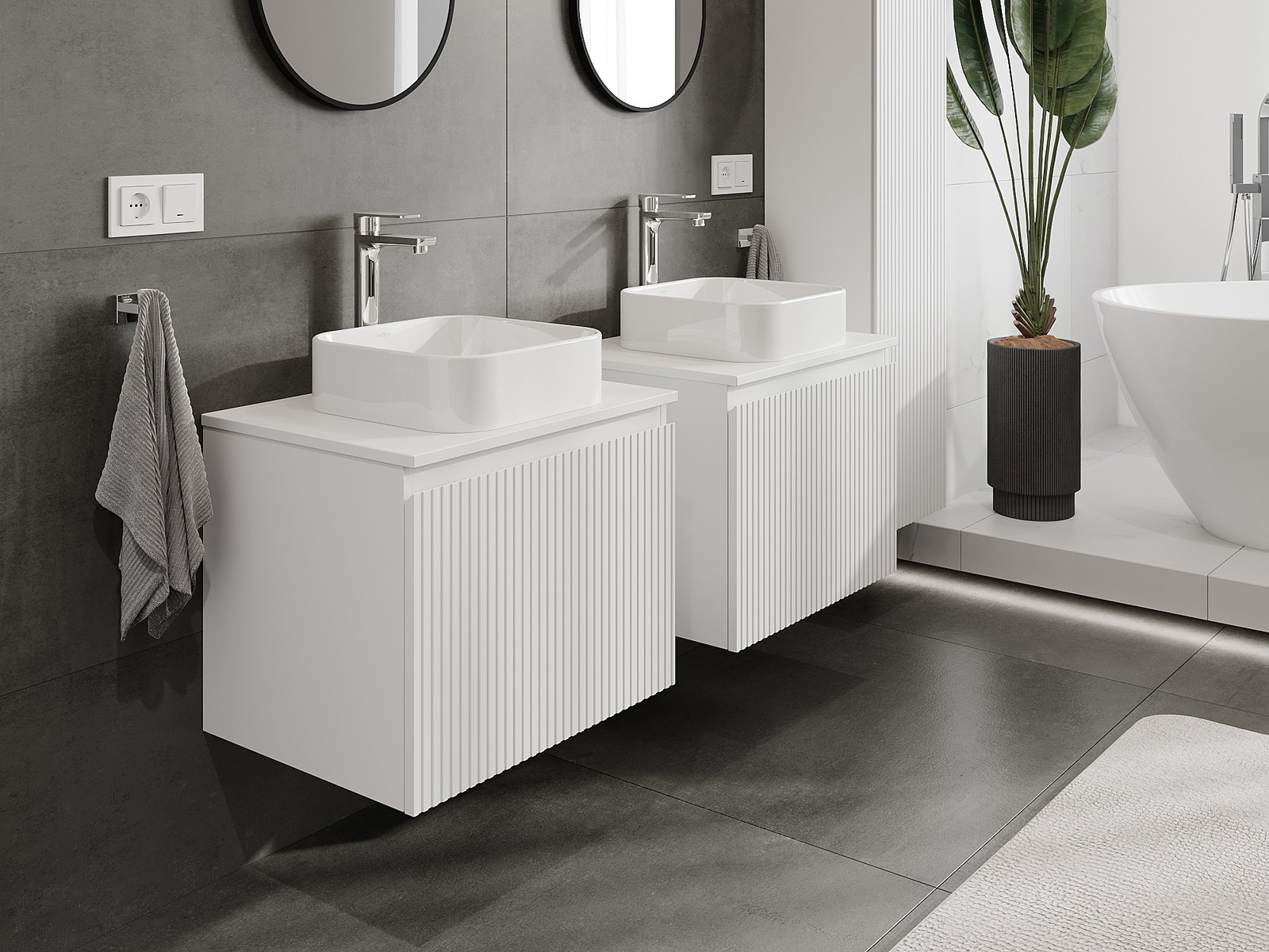 Mūsu modulārās vannas istabas mēbeles var savstarpēji kombinēt dažādās krāsu konfigurācijās, ļaujot pilnīgu personalizāciju. Var izvēlēties gan izskatu, gan atsevišķu elementu funkcijas, kas ļauj pielāgot mēbeles savām stilistiskajām un lietotāju vēlmēm.