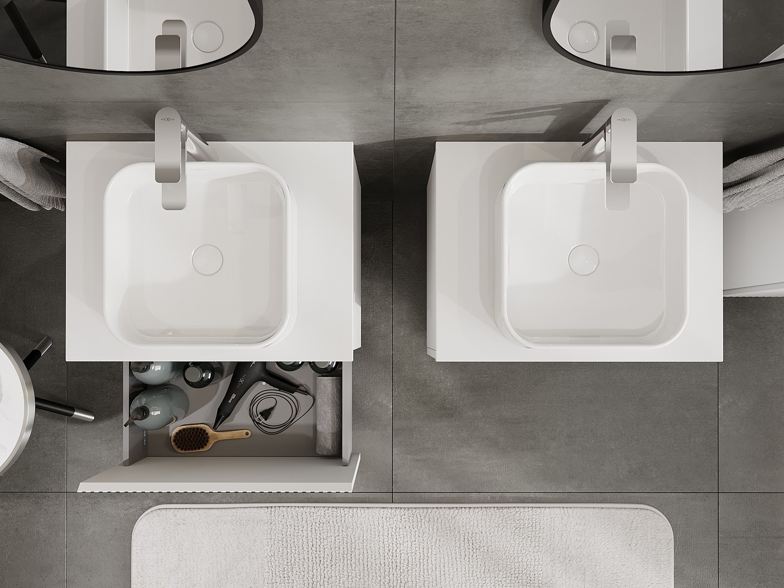 Mexen Rivel vannas istabas izlietnes skapītis 60 cm ar virsmu, 1 atvilktne, rievota, balta matēta - 91A20-06047-1-BFC01