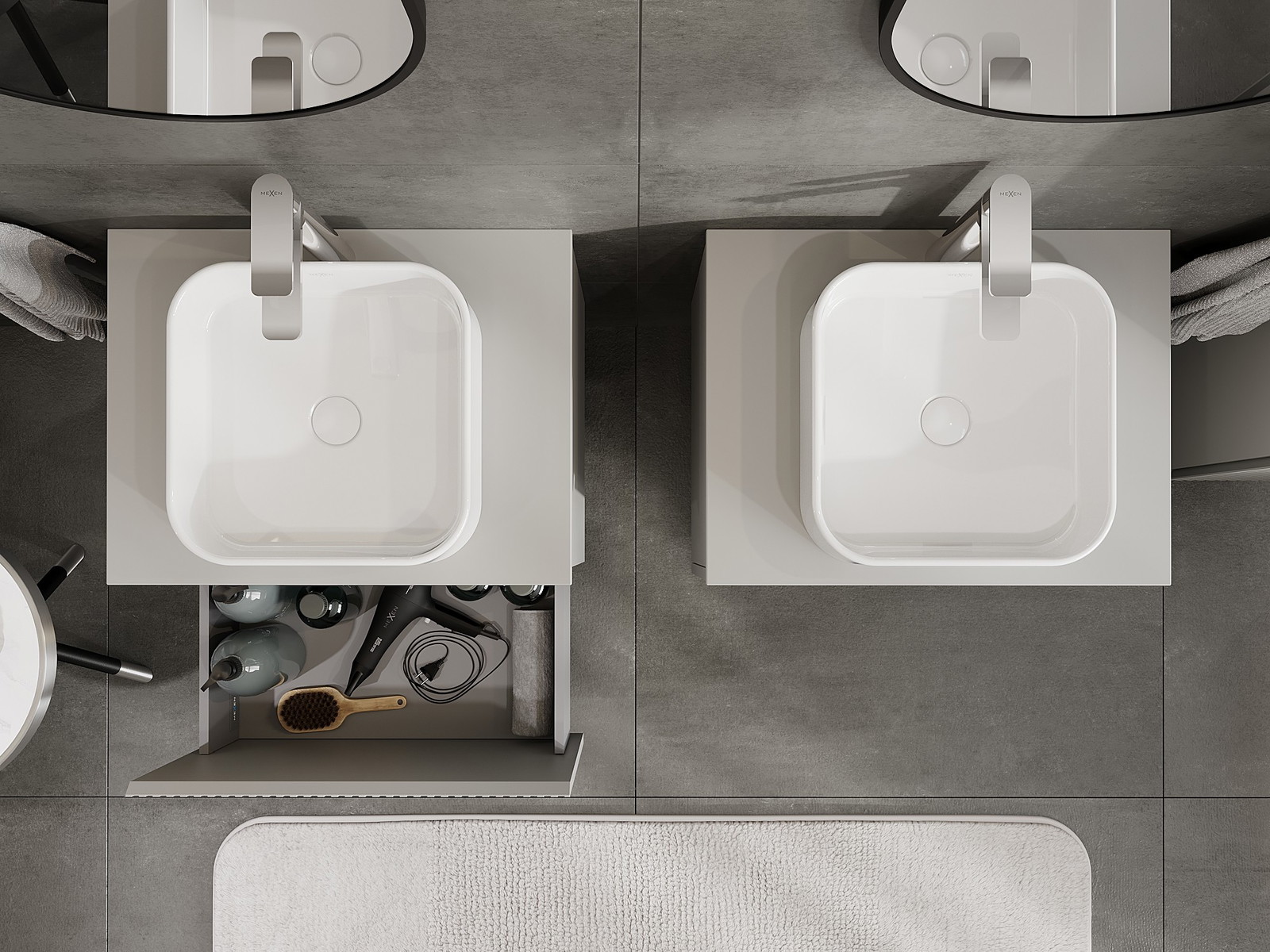 Mexen Rivel 60 cm vannas istabas izlietnes skapītis ar galda virsmu, 1 atvilktne, rievots, pelēks mats - 91A20-06047-1-BFC62