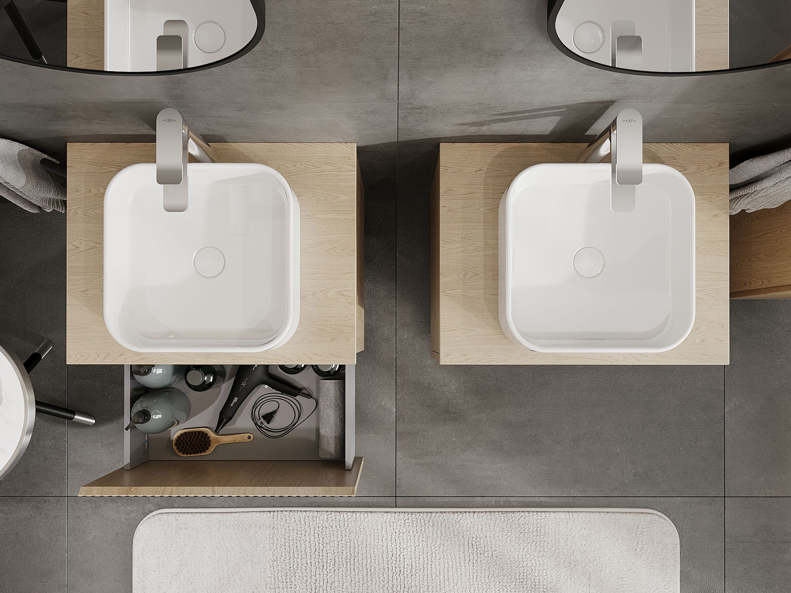 Skapja korpuss tiek piegādāts pilnībā samontēts, kas nozīmē maksimālu ērtību un laika ietaupījumu. Jums nav jātērē stundas mēbeļu salikšanai – pietiek to uzstādīt izvēlētajā vietā vannas istabā. Tas ir ideāls risinājums cilvēkiem, kuri novērtē ātru montāžu un tūlītēju efektu.